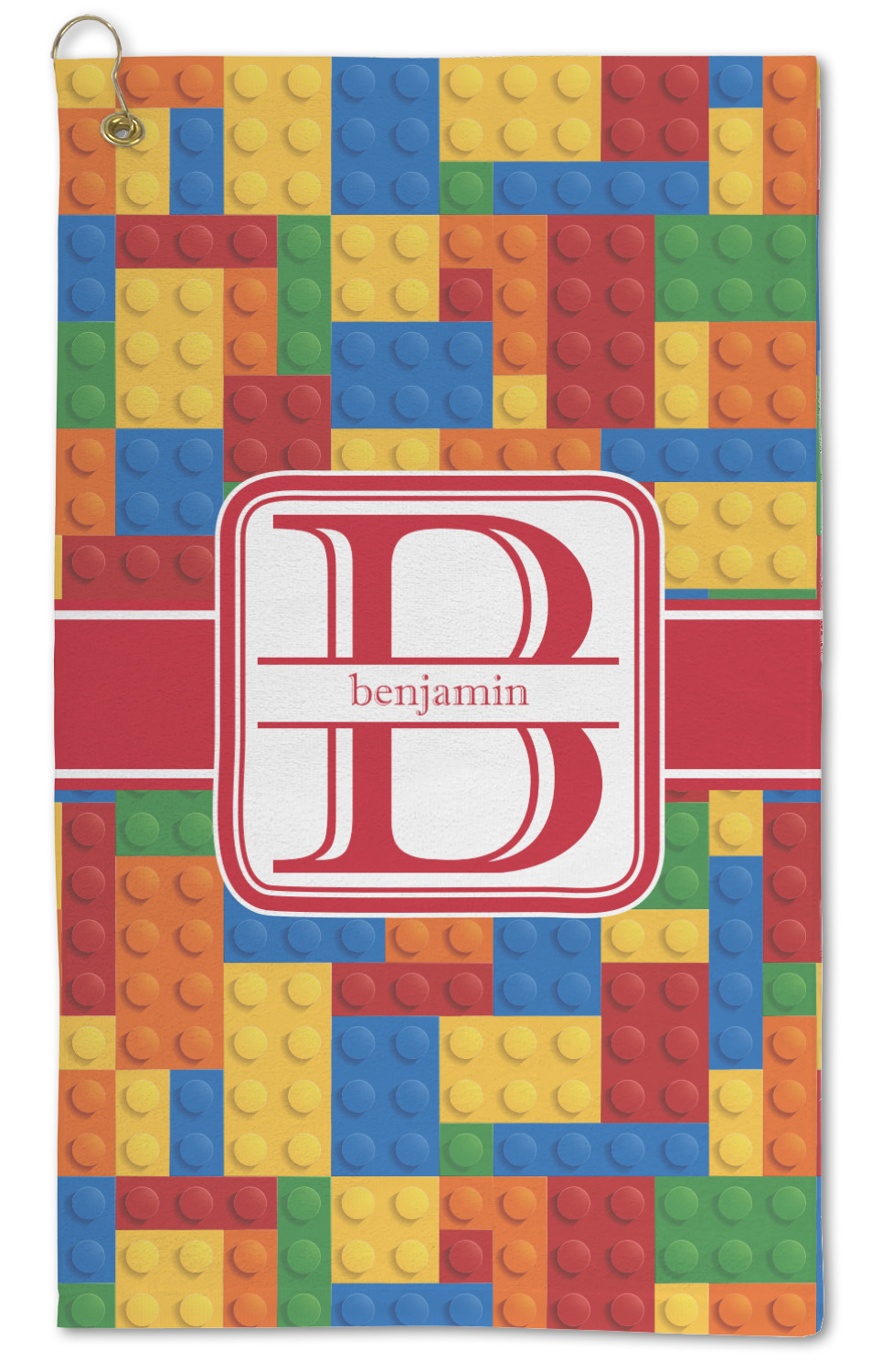 This building blocks design is made up of blocks of different shapes. sizes and colors all fitted together. We have featured a red ribbon along with square label and an initial and name for personalization.