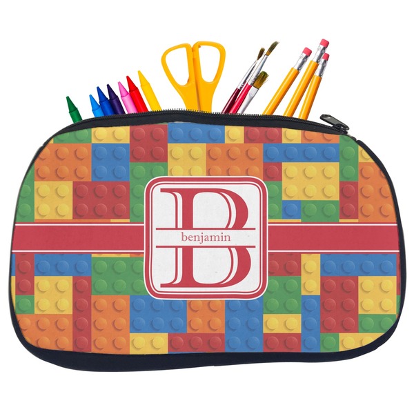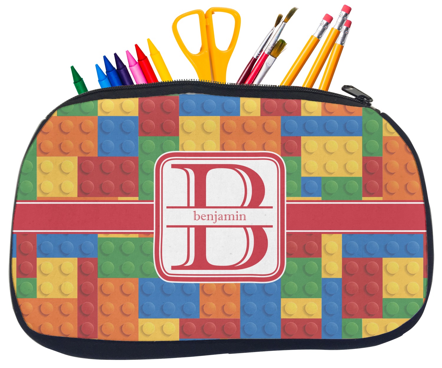 Built from durable neoprene, these pencil pouches, are water resistant, and prevent leaking ink from spilling into your backpack or purse. These custom pencil cases secure with a robust, black zipper. We print your personalized design on the front of this pouch, while the remaining sides a simple black color. These colored pencil cases [880] are sold in two sizes; our smaller version measures at 8.5 by 4.5 inches, while the medium measures at 10.5 by 6.5 inches. The smaller size is more suitable for holding pencils and pens, while our medium size can accommodate pencil sharpeners, scissors, and erasers.