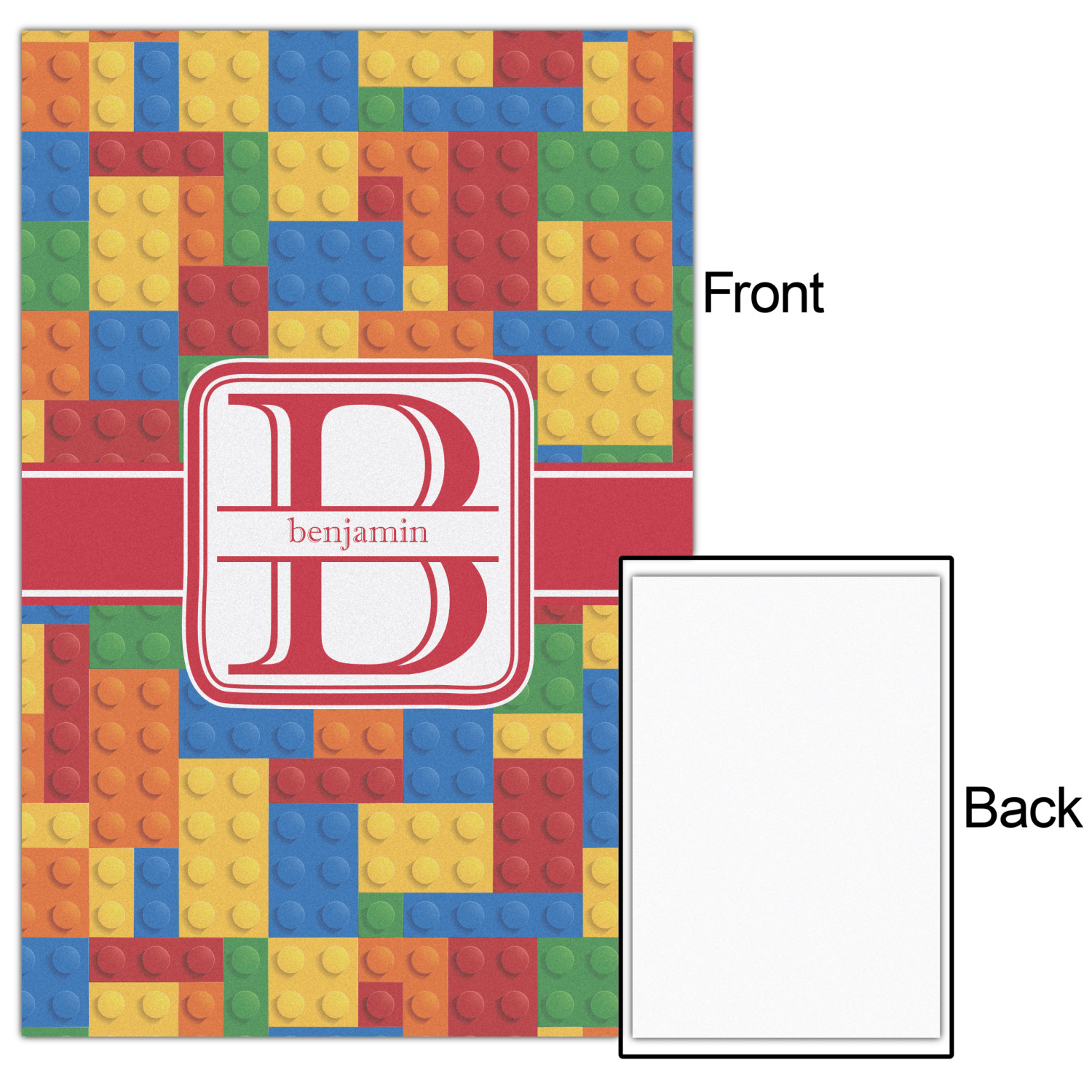 This building blocks design is made up of blocks of different shapes. sizes and colors all fitted together. We have featured a red ribbon along with square label and an initial and name for personalization.
