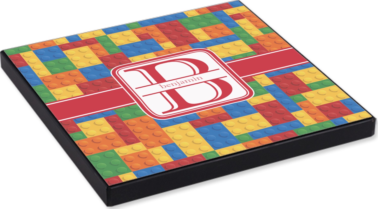 This building blocks design is made up of blocks of different shapes. sizes and colors all fitted together. We have featured a red ribbon along with square label and an initial and name for personalization.