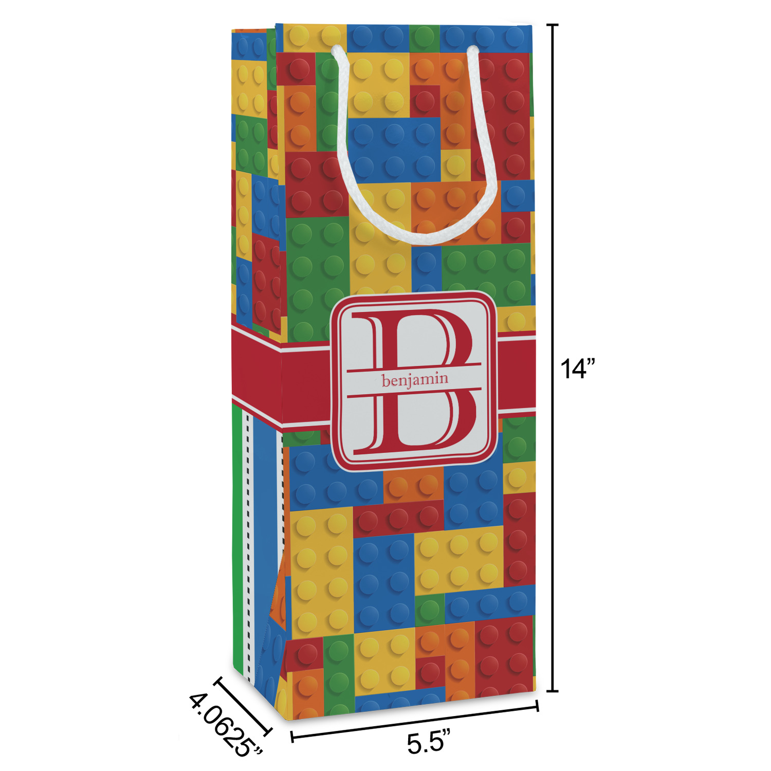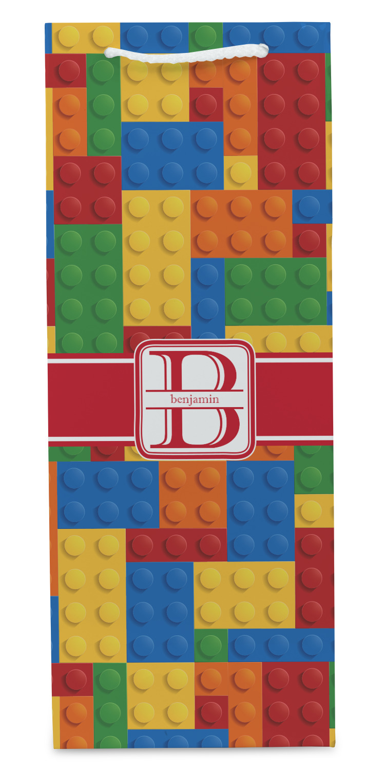 This building blocks design is made up of blocks of different shapes. sizes and colors all fitted together. We have featured a red ribbon along with square label and an initial and name for personalization.