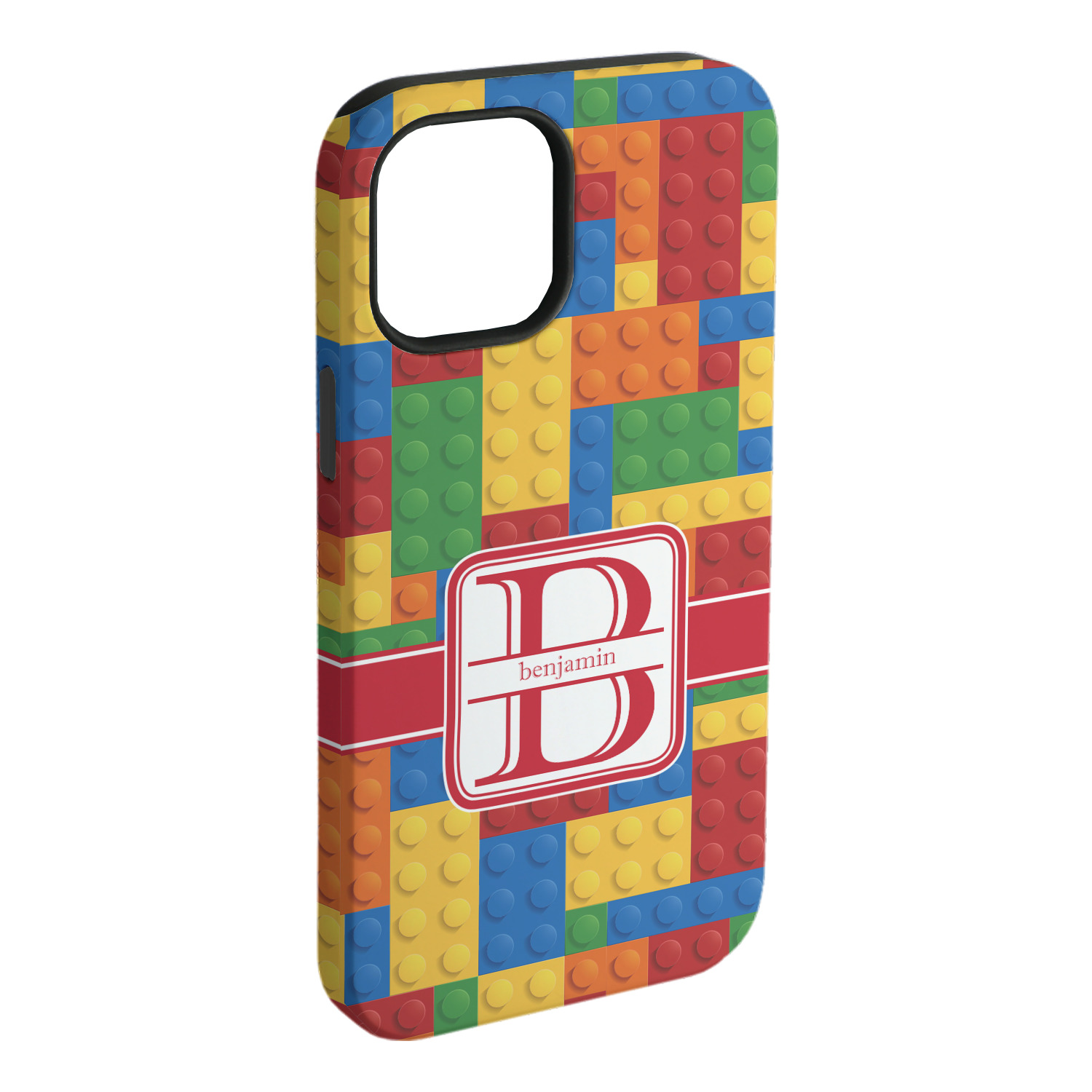 This building blocks design is made up of blocks of different shapes. sizes and colors all fitted together. We have featured a red ribbon along with square label and an initial and name for personalization.
