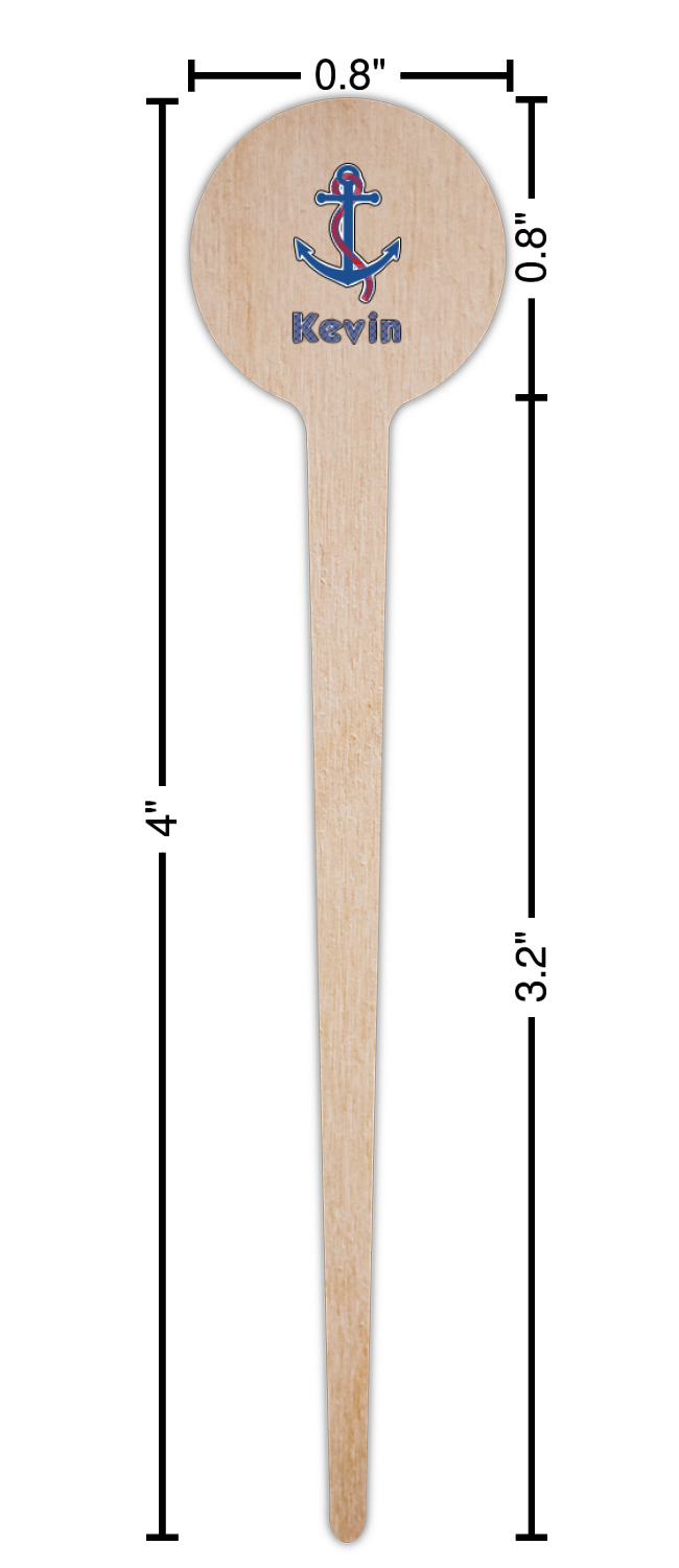 Coastal / Beach Style Designs for 4" Round Wooden Food Picks - Single-Sided