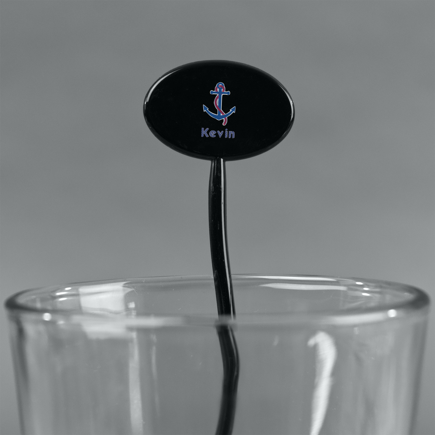 Coastal / Beach Style Designs for 7" Oval Plastic Stir Sticks - Black - Double-Sided