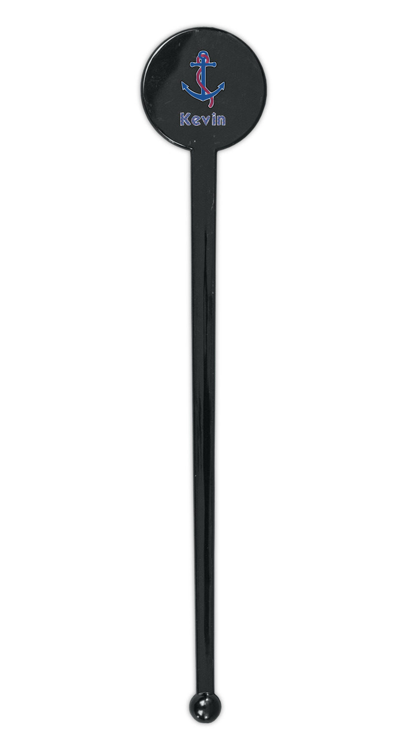Coastal / Beach Style Designs for 7" Round Plastic Stir Sticks - Black - Single-Sided