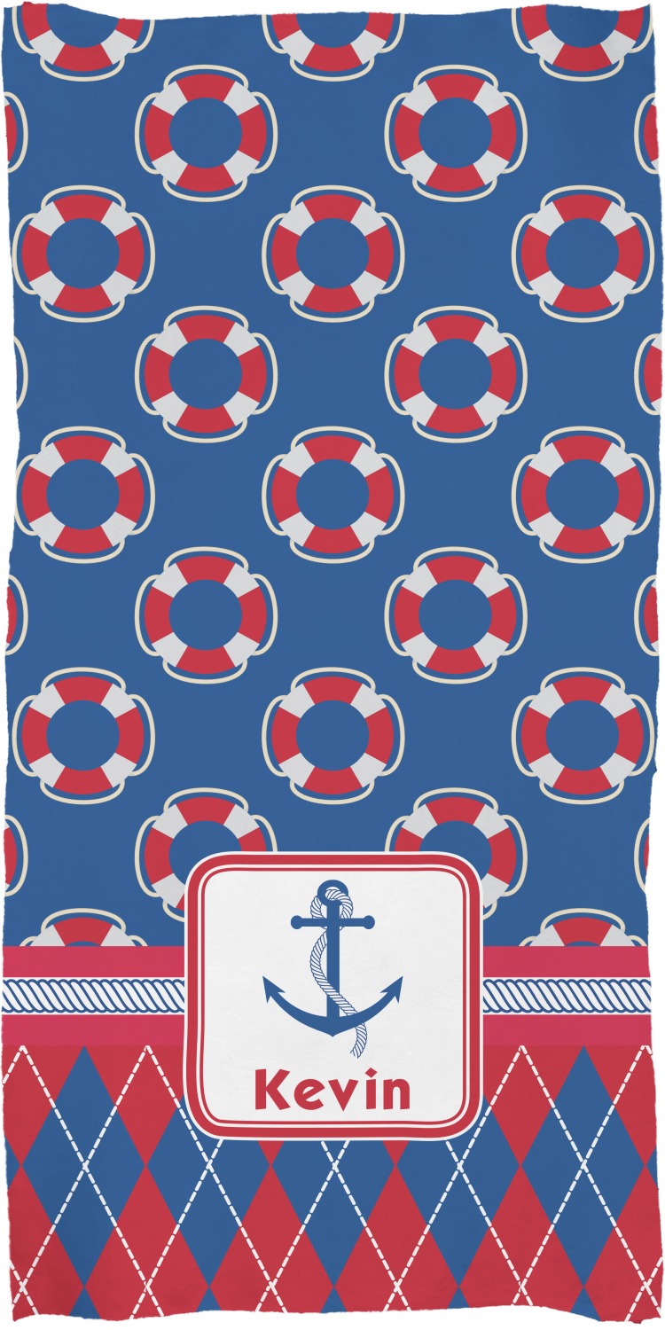A square label showcases an anchor and rope in the coordinating colors. Add your child's name for that personalized designer's touch.