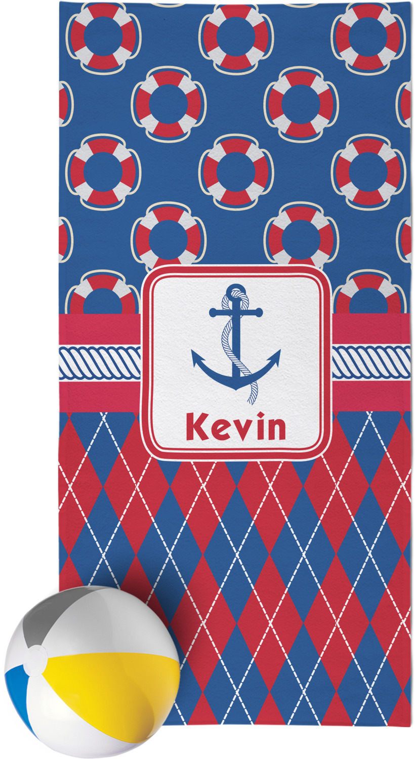 A square label showcases an anchor and rope in the coordinating colors. Add your child's name for that personalized designer's touch.