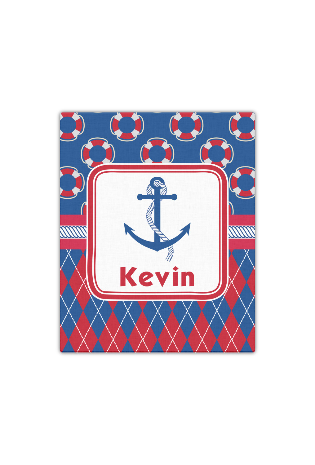 A square label showcases an anchor and rope in the coordinating colors. Add your child's name for that personalized designer's touch.