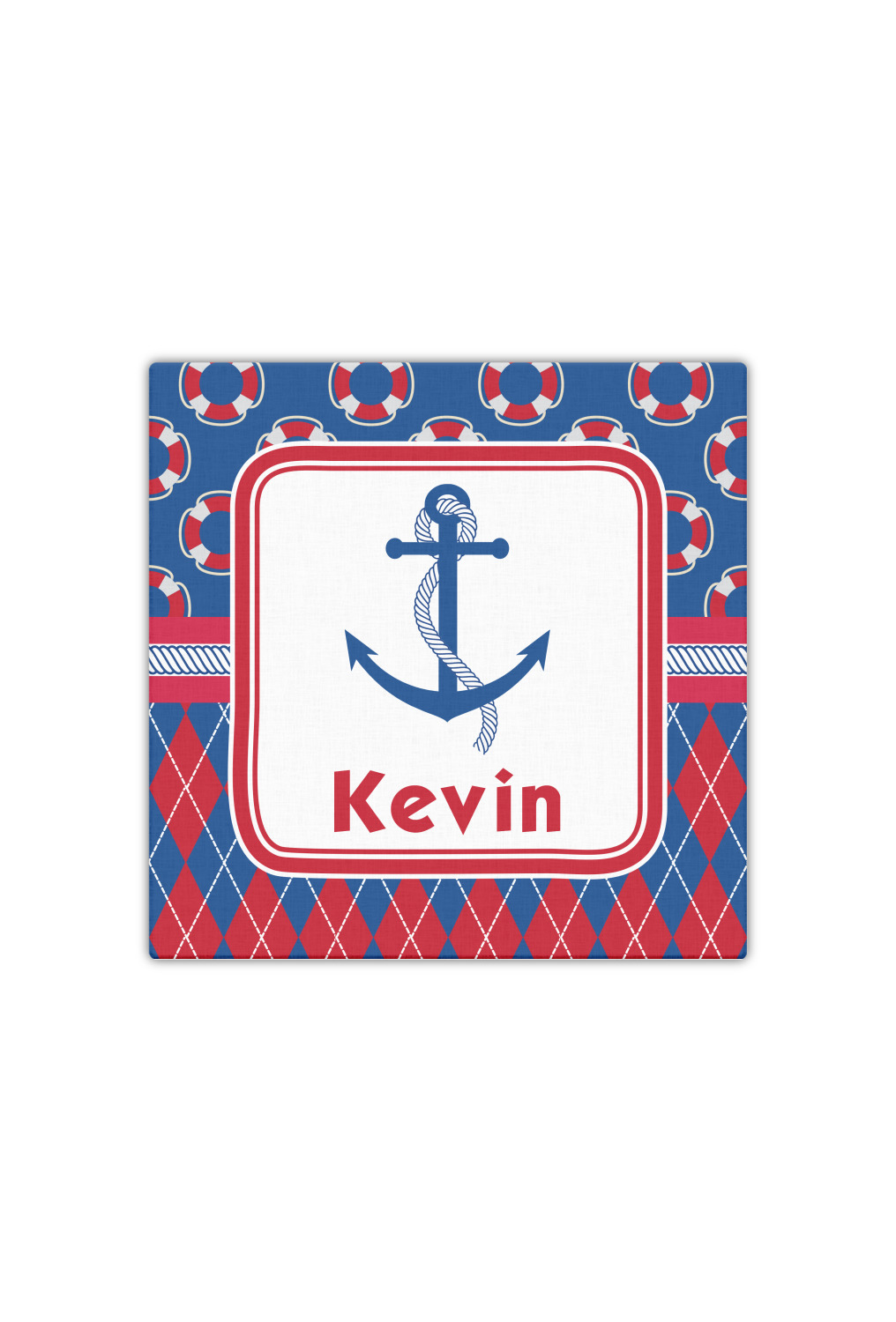 A square label showcases an anchor and rope in the coordinating colors. Add your child's name for that personalized designer's touch.