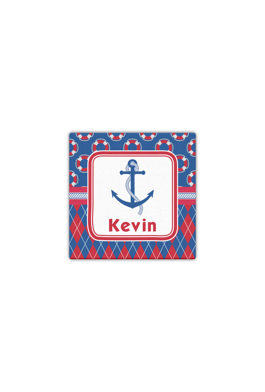 A square label showcases an anchor and rope in the coordinating colors. Add your child's name for that personalized designer's touch.