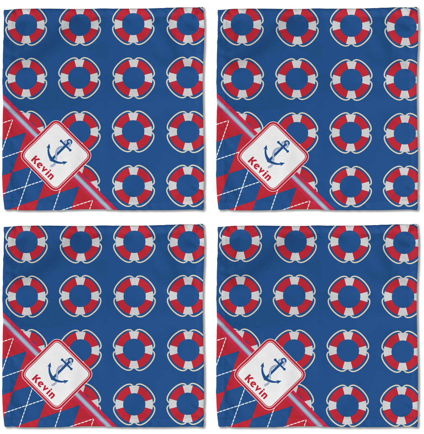 Each customizable cloth napkin is a polyester material guaranteed for long-term use. Since our napkins are cloth, it serves as a great reusable and eco-friendly dining decor. We sell personalized napkins individually or as a set of 4! Print your own unique design on all four napkins, or create four individual designs for each napkin! We offer two different napkin sizes - Cocktail napkins (approx. 10 x 10) and Dinner napkins (approx. 20 x 20). We print your design on one side, perfect for displaying your custom designed lunch napkins in any fold or table setting!