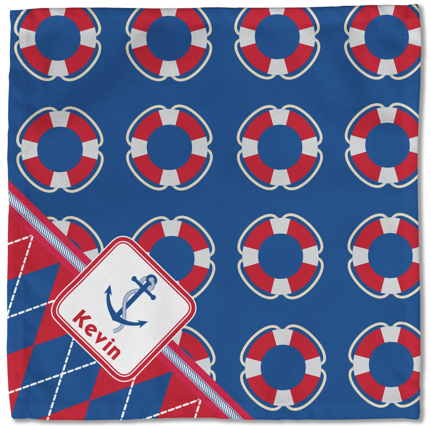 A square label showcases an anchor and rope in the coordinating colors. Add your child's name for that personalized designer's touch.