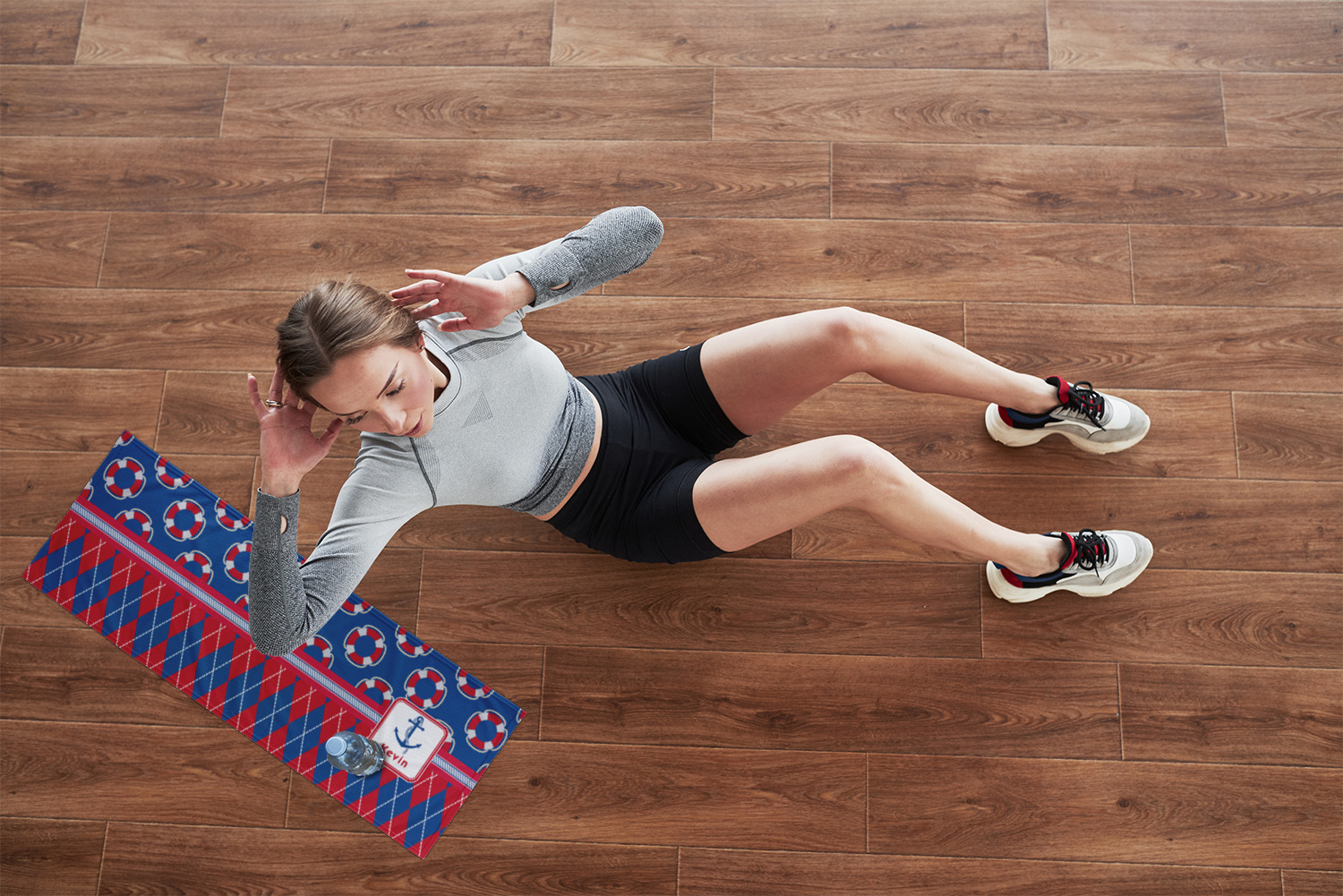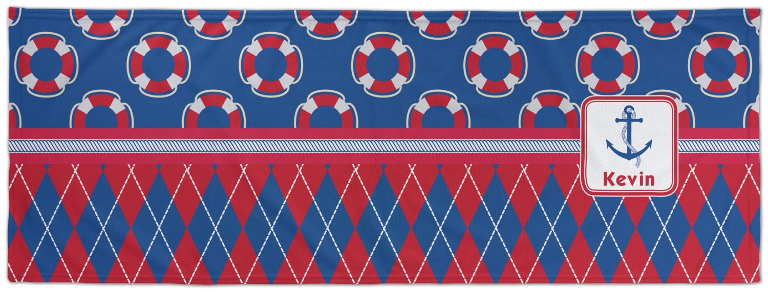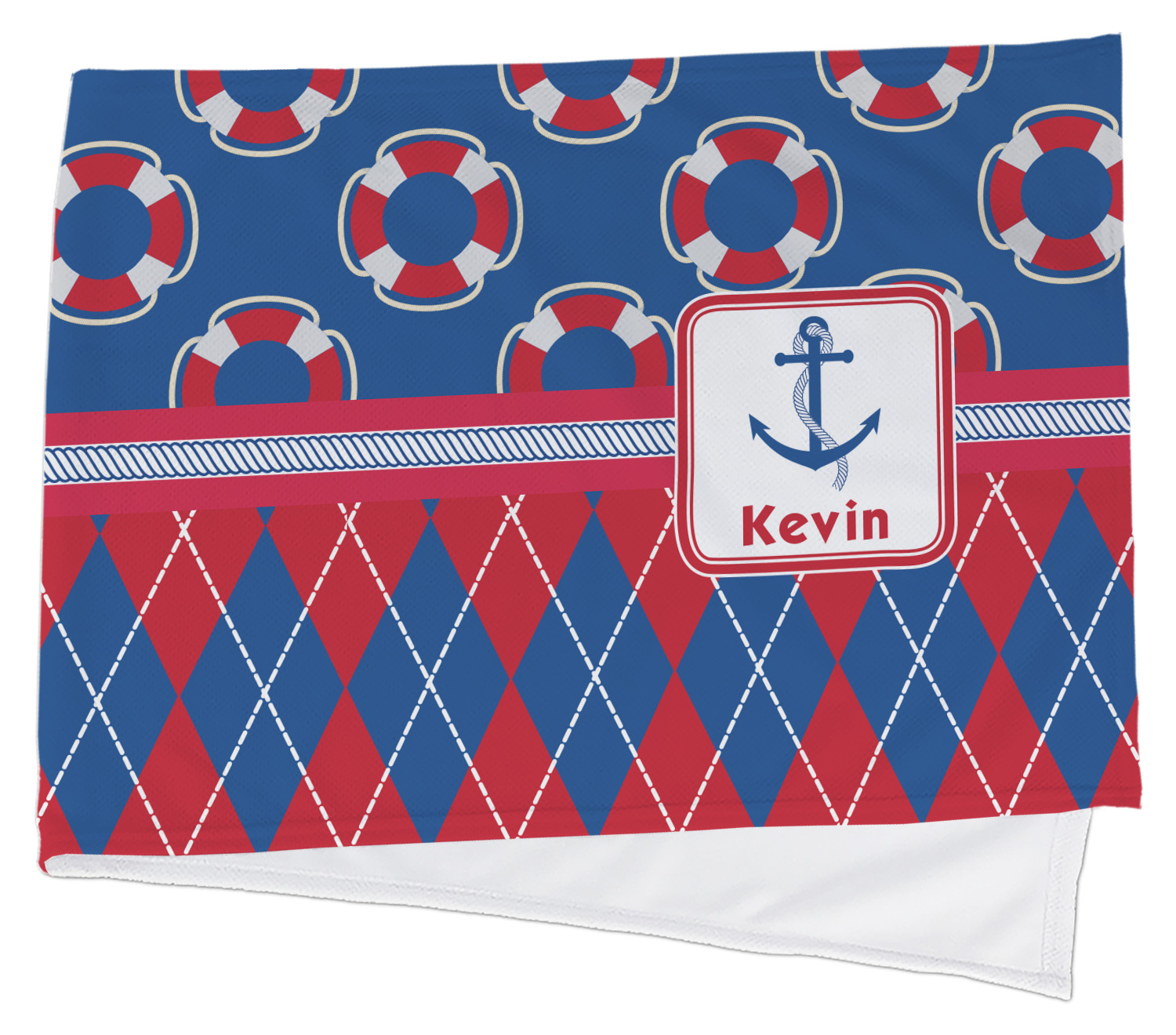 A square label showcases an anchor and rope in the coordinating colors. Add your child's name for that personalized designer's touch.
