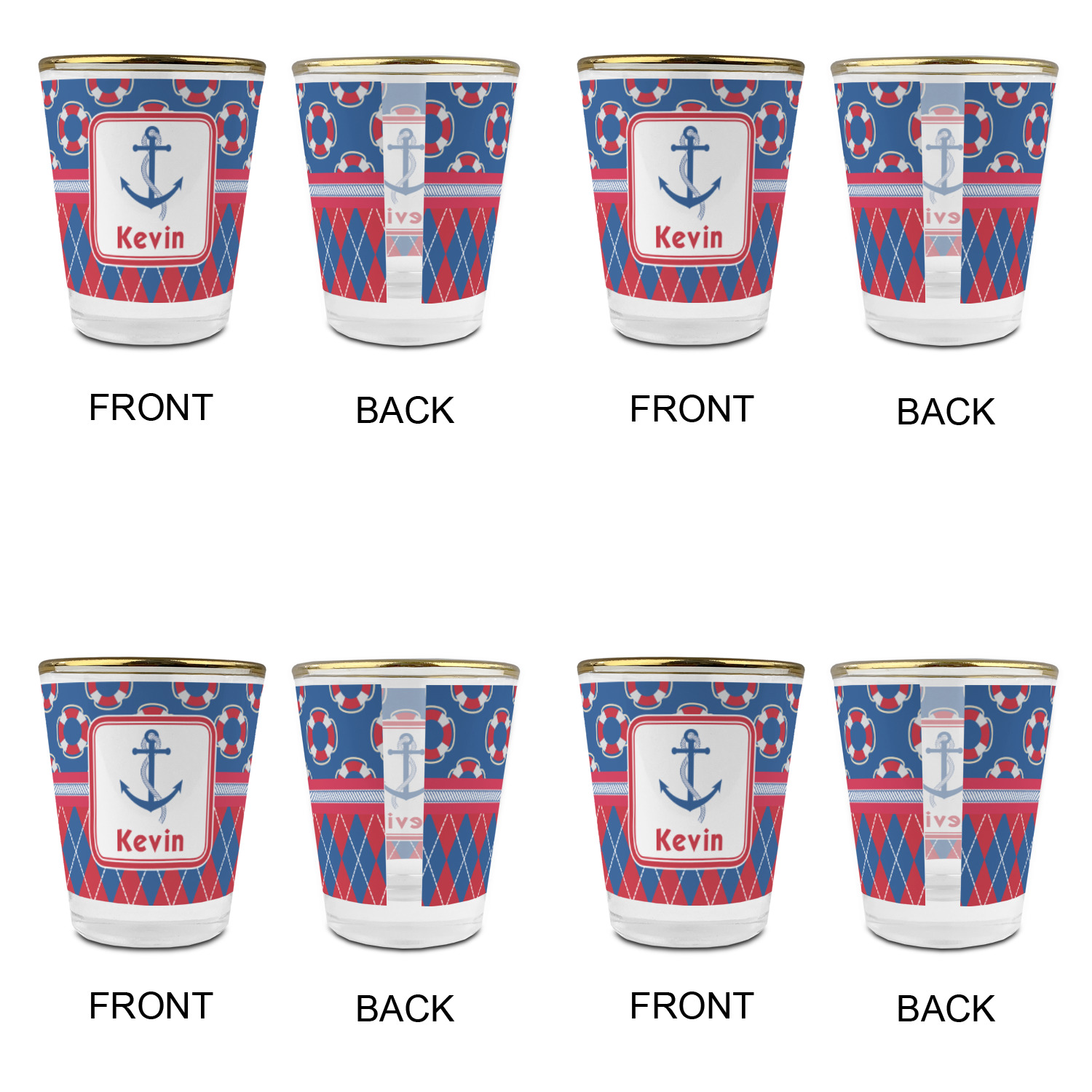 Coastal / Beach Style Designs for Glass Shot Glasses - 1.5 oz - with Gold Rim - Set of 4