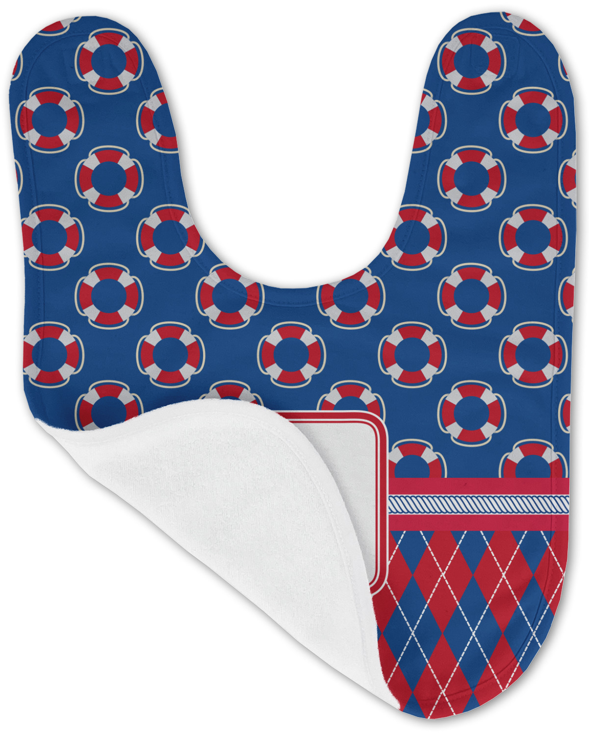 A square label showcases an anchor and rope in the coordinating colors. Add your child's name for that personalized designer's touch.