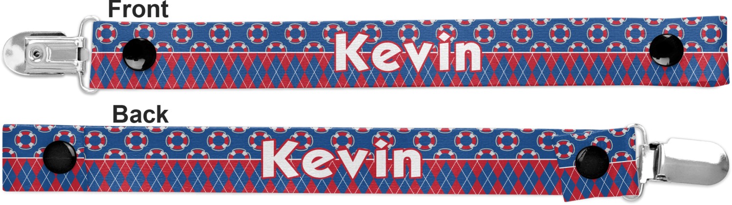 This personalized pacifier clip is the ideal size and measures at approximately 7.5 inches in length, when either end is snapped closed. On one end, you'll find a snap button. This button of your baby's pacifier holder is what can be attached to their pacifier to hold is securely in place. Simply open the snap, slip it through the pacifier opening, and snap it back into place. On the opposite end of this baby pacifier holder, you'll find a metal clip that can secure to a baby's collar or sleeve. This clip ensures that the strap stays in place, and that your baby's pacifier is always on hand.