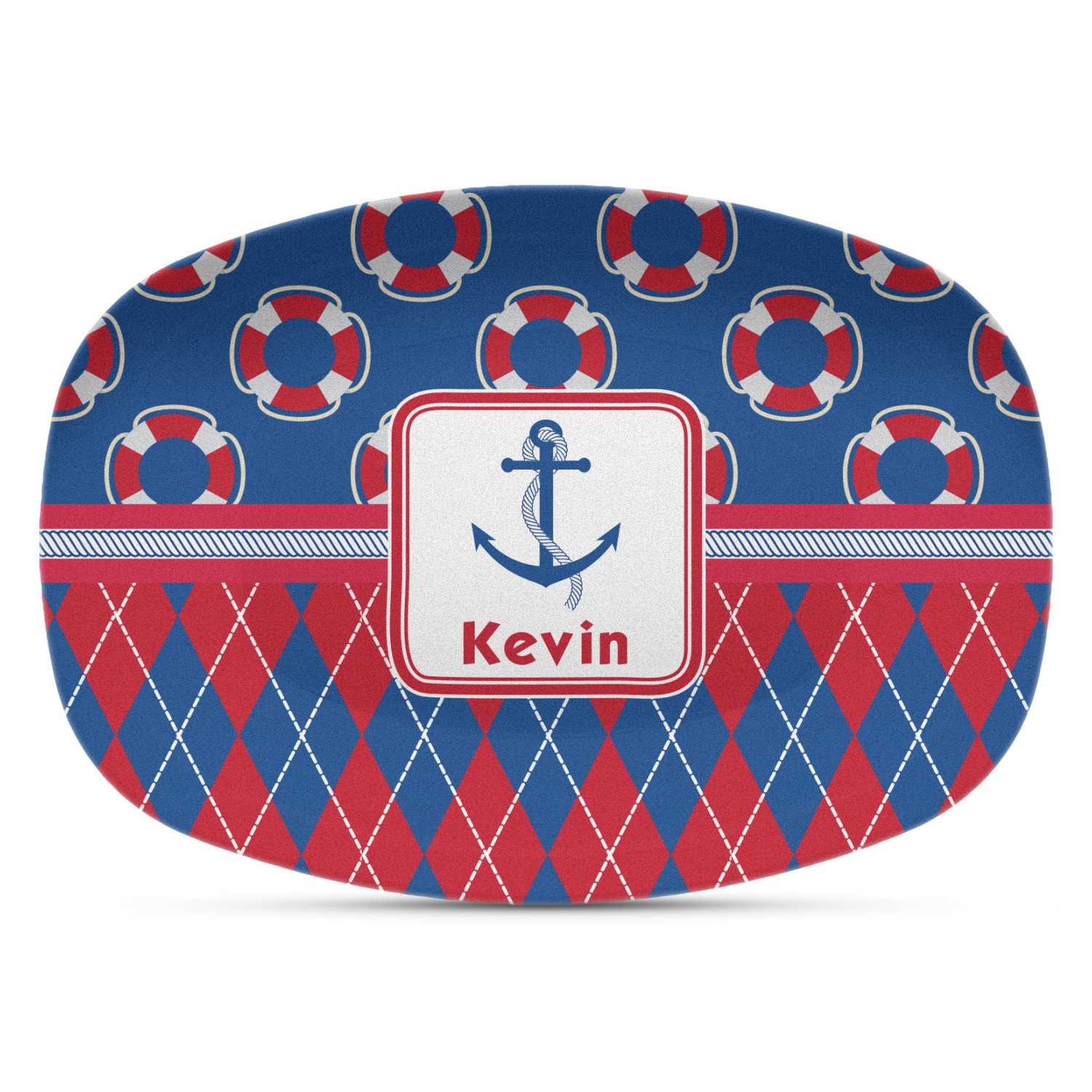 A square label showcases an anchor and rope in the coordinating colors. Add your child's name for that personalized designer's touch.