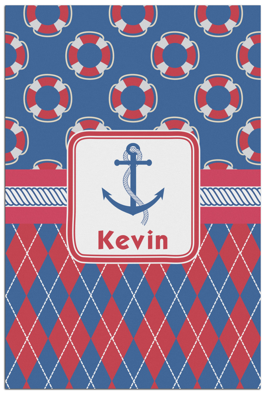 A square label showcases an anchor and rope in the coordinating colors. Add your child's name for that personalized designer's touch.