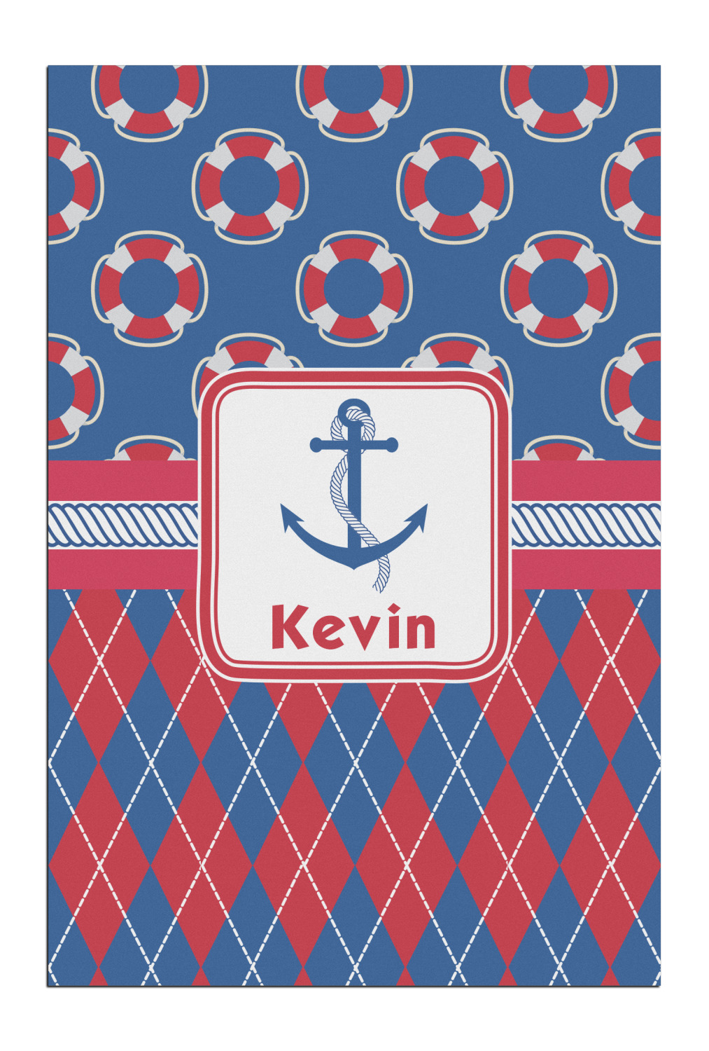 A square label showcases an anchor and rope in the coordinating colors. Add your child's name for that personalized designer's touch.
