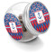 This treat jar is an excellent way to store treats for your favorite canine or feline. Moreover, their delicate, classy appearance makes them a tasteful addition to your countertop's décor. Crafted from clear glass, its unique construction and silver metal, screw-on lid allows for quick and easy access. Three, permanent, vinyl stickers are applied to both sides of the jar and lid, presenting your personalized design. The base of this glass, dog treat jar is 3.4" x 4.75", and the jar stands at 5" tall. Though on the smaller side, this jar is best suited for smaller treats or training treats.
