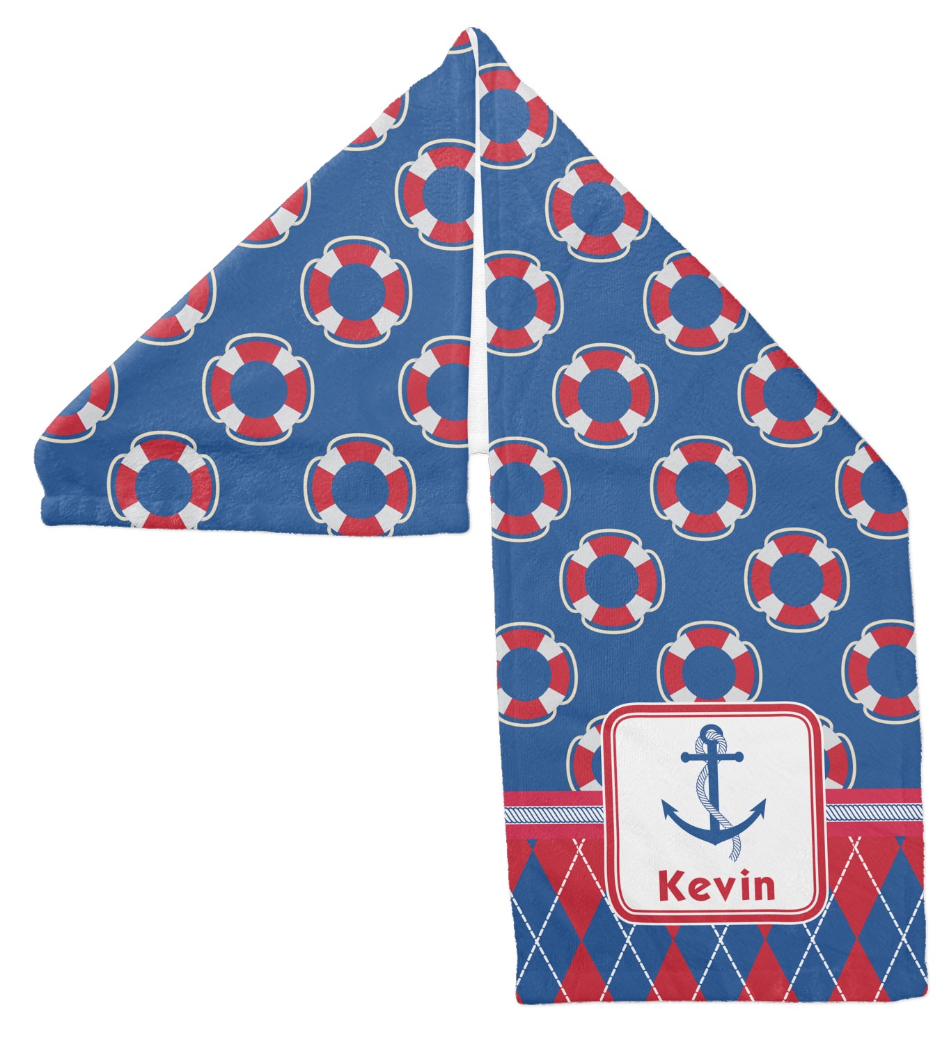 A square label showcases an anchor and rope in the coordinating colors. Add your child's name for that personalized designer's touch.