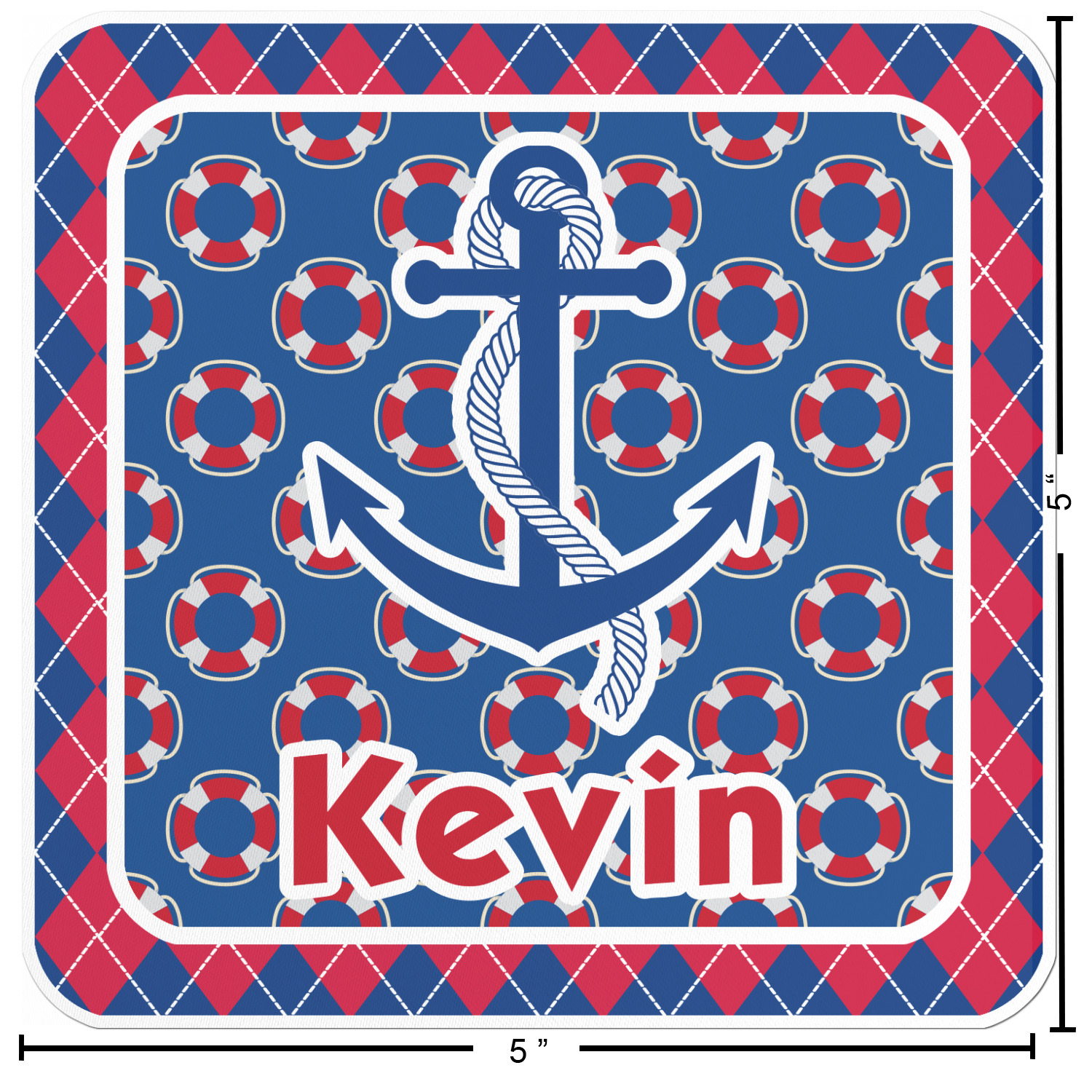 A square label showcases an anchor and rope in the coordinating colors. Add your child's name for that personalized designer's touch.