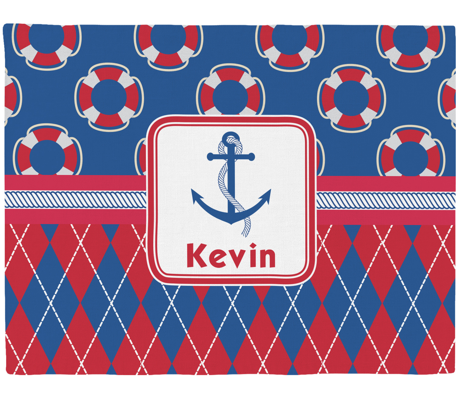 A square label showcases an anchor and rope in the coordinating colors. Add your child's name for that personalized designer's touch.