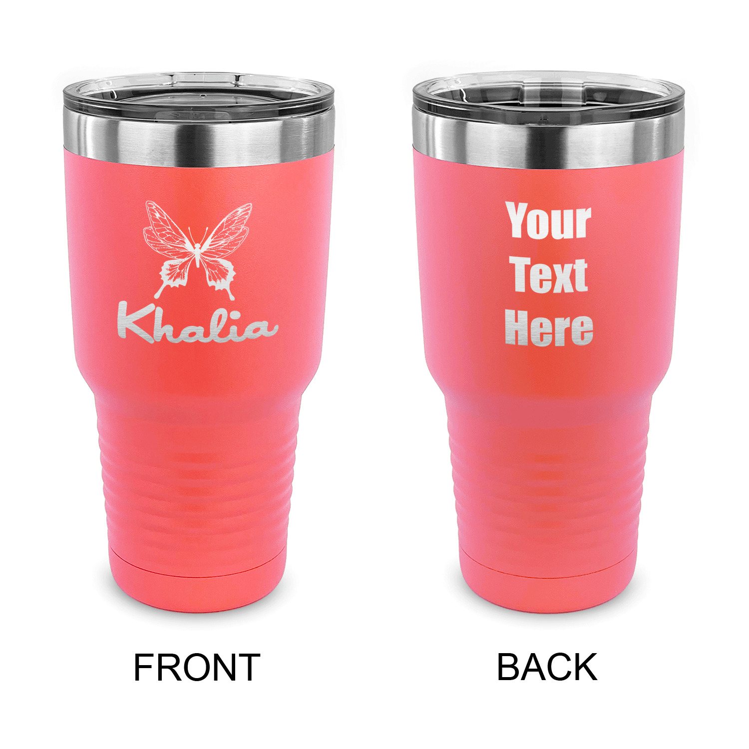 With our personalized 30 oz double wall stainless steel tumblers, you'll never have to settle for a plain, boring tumbler again! These tumblers will be a wonderful addition to your drinkware collection and will make those long commutes much brighter. Personalize one for yourself, or give these personalized tumblers as a gift to relatives, friends, or coworkers!
