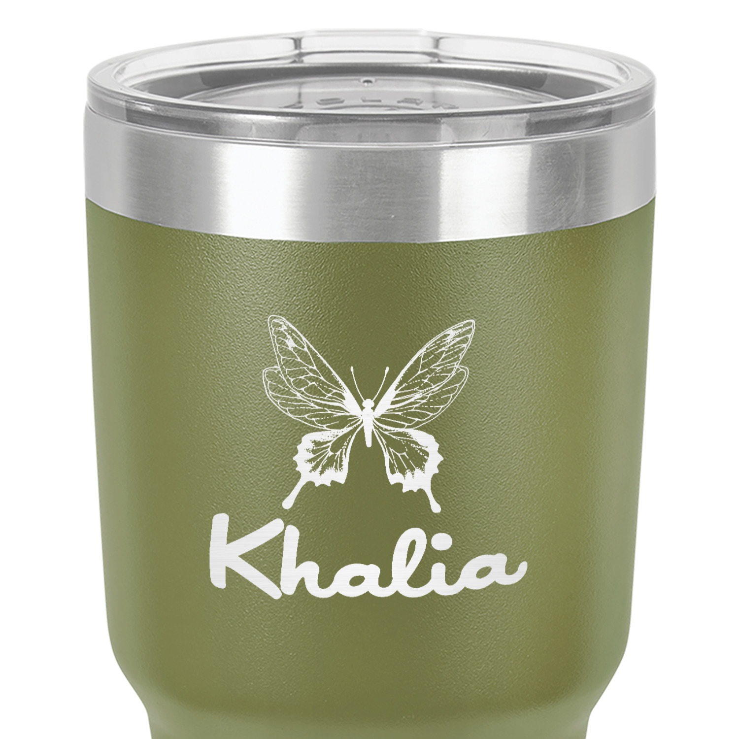 With our personalized 30 oz double wall stainless steel tumblers, you'll never have to settle for a plain, boring tumbler again! These tumblers will be a wonderful addition to your drinkware collection and will make those long commutes much brighter. Personalize one for yourself, or give these personalized tumblers as a gift to relatives, friends, or coworkers!
