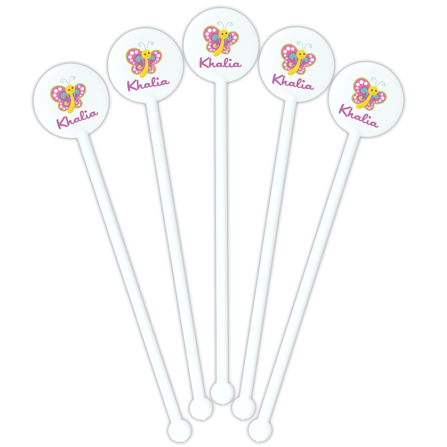 Snail Designs for 5.5" Round Plastic Stir Sticks - White - Single-Sided