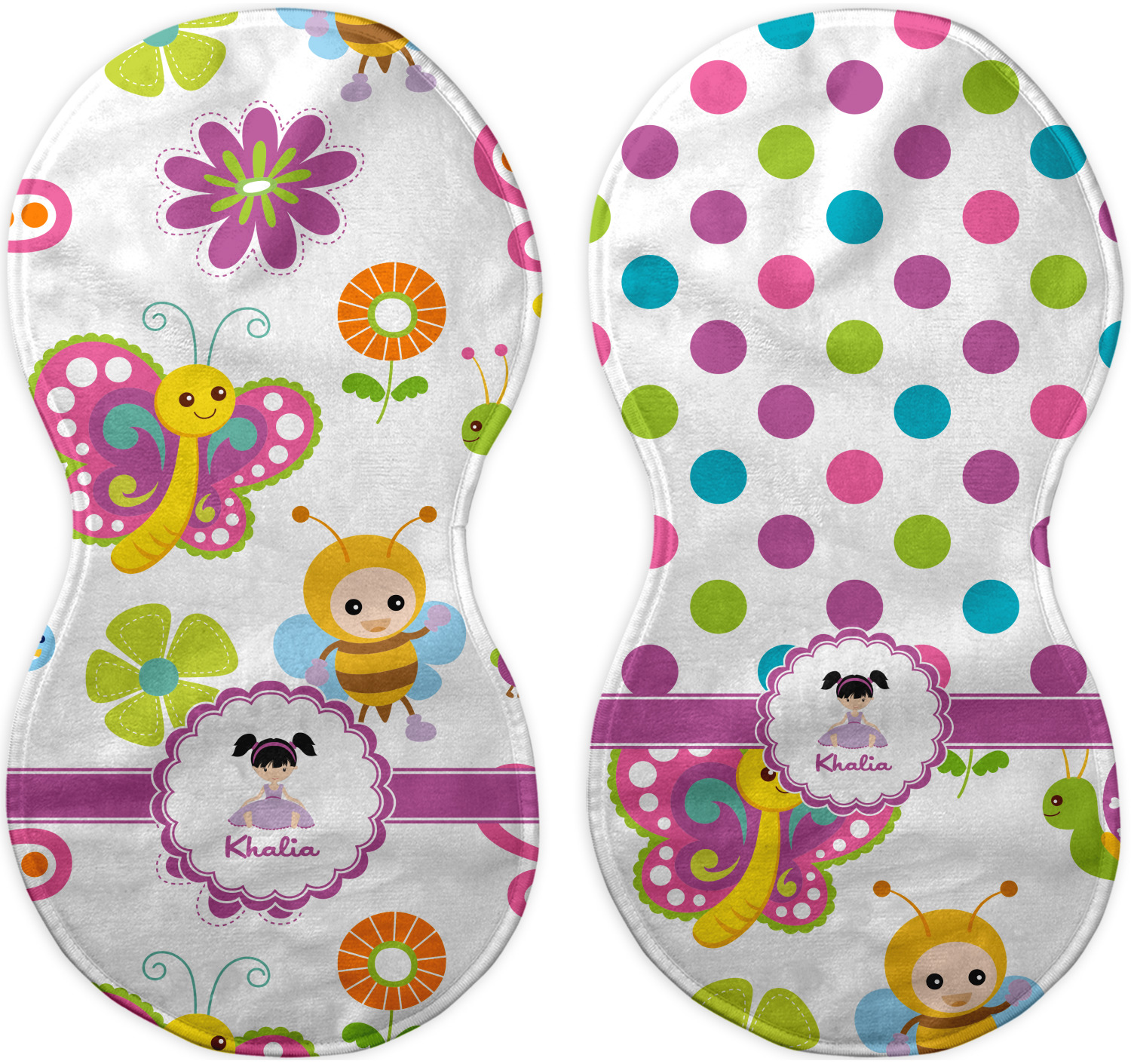 Choose your baby burp cloth from our two styles - Fleece (rectangular) or Microfiber Velour (peanut shape). The lightweight and absorbent design makes each burp cloth multipurpose; use them as a burp pad, a lap pad, a changing table, or a spare cloth to clean up any baby mess. Your customization is displayed across the front with baby-safe ink to ensure extra comfort with a white backing.