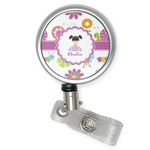 A wide band of purple with an inset of white pull the pattern together. A sweet little girl sits in the center of a purple trimmed scalloped white circle. Add personalization for that custom touch.