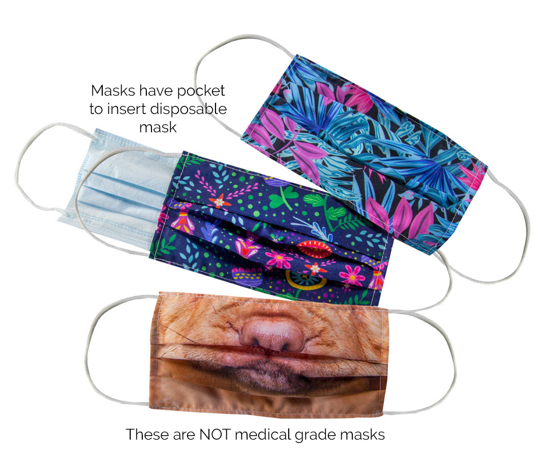 The masks can be worn as is to simply cover your nose and mouth in public places or you can slip in a filter or a disposable mask inside the pocket between the two layers. These cloth face masks are NOT a medical product.