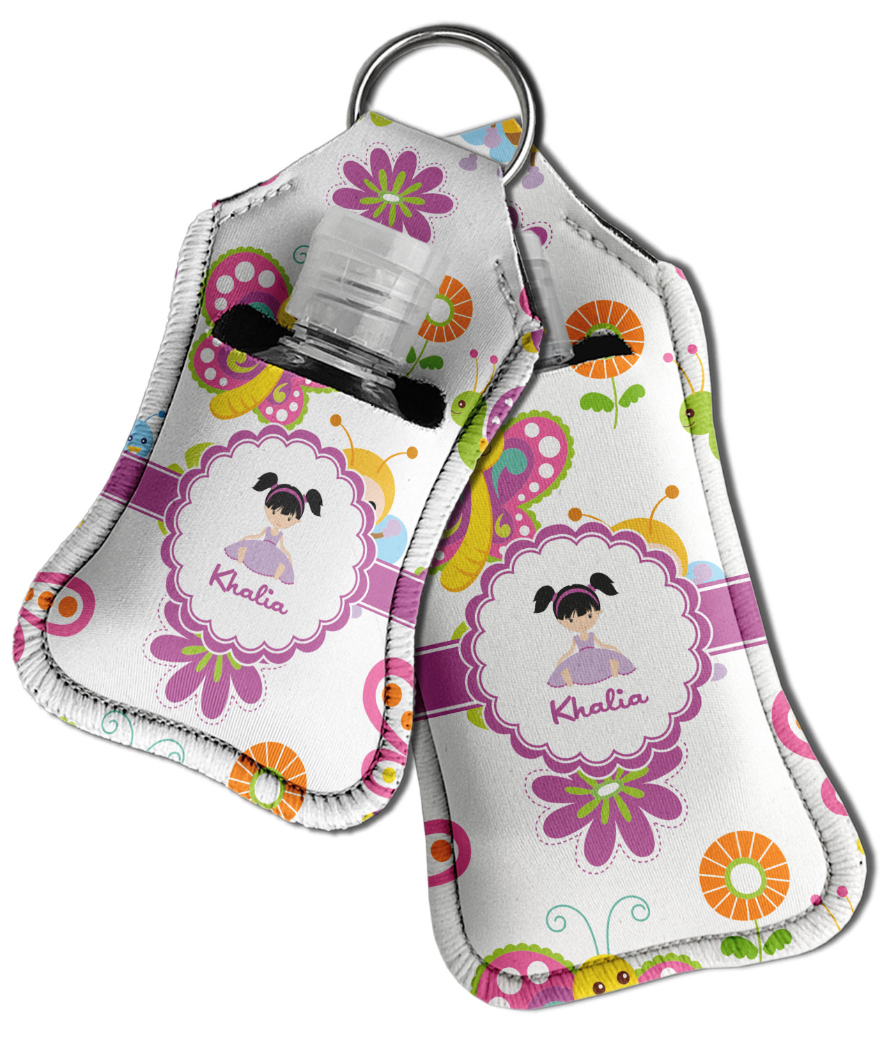 Each hand sanitizer holder comes with its own empty travel-sized, refillable hand sanitizer sure to fit snug in your customized sanitizer case! Our hand sanitizer cases are a durable, yet soft neoprene material sure to last any daily activities or travel agenda. Customize and personalize a hand sanitizer bottle holder with one of our two sizes - small (4.25" x 2.25") or large (5.5" x 2.5"). Each travel sanitizer holder comes with a keyring for attachment on bags, keys, or more!