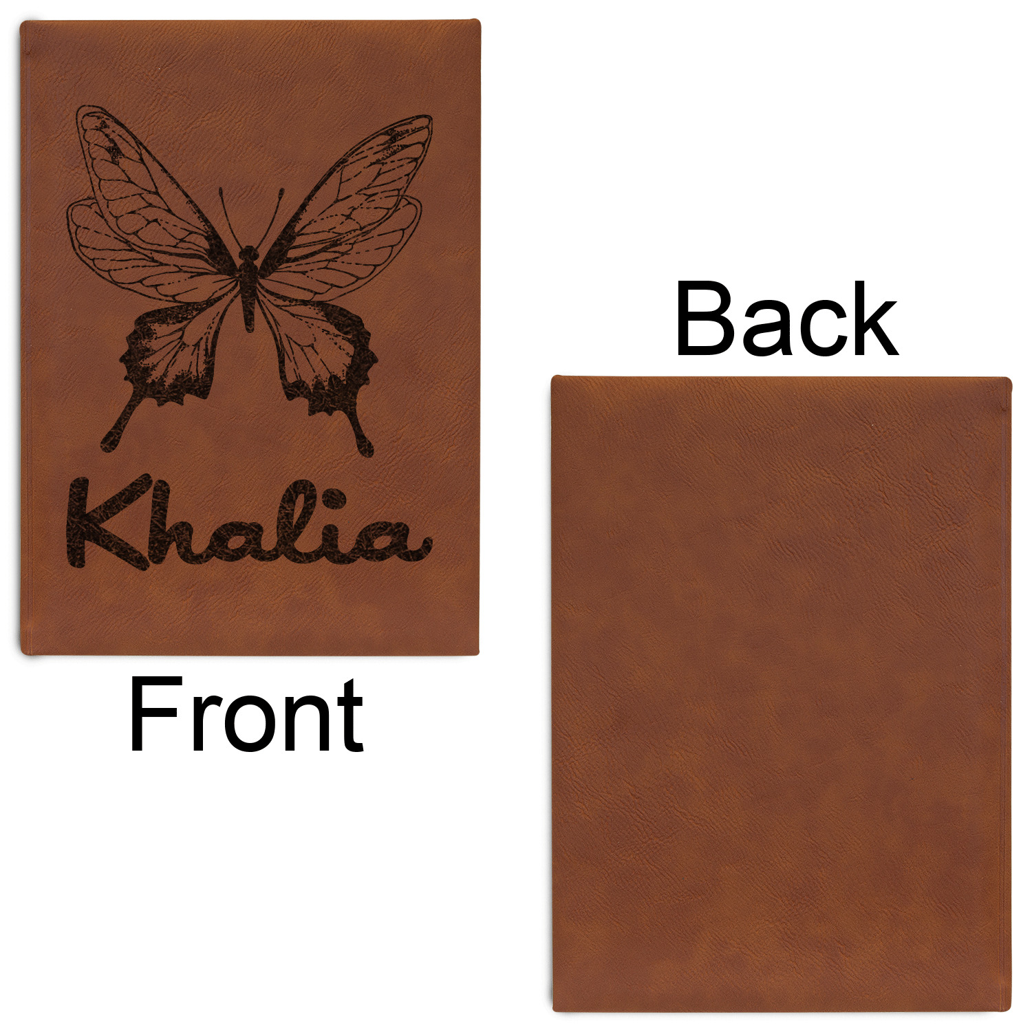 The faux leather covers are a rich cognac / rawhide color and can be customized with your design. From a simple name or monogram or a logo to a detailed mandala - the choice for customization & personalization is truly yours. Customize one of our designs or upload your own.