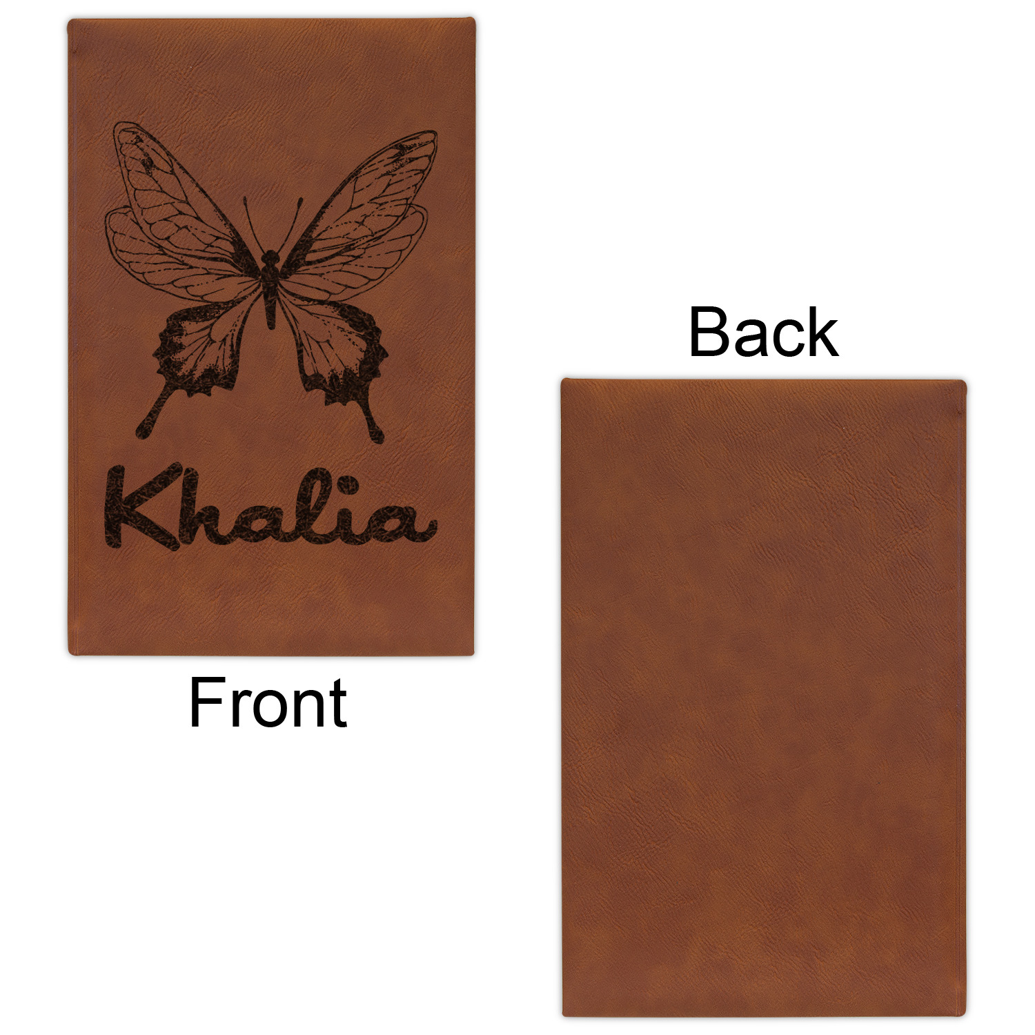 The faux leather covers are a rich cognac / rawhide color and can be customized with your design. From a simple name or monogram or a logo to a detailed mandala - the choice for customization & personalization is truly yours. Customize one of our designs or upload your own.