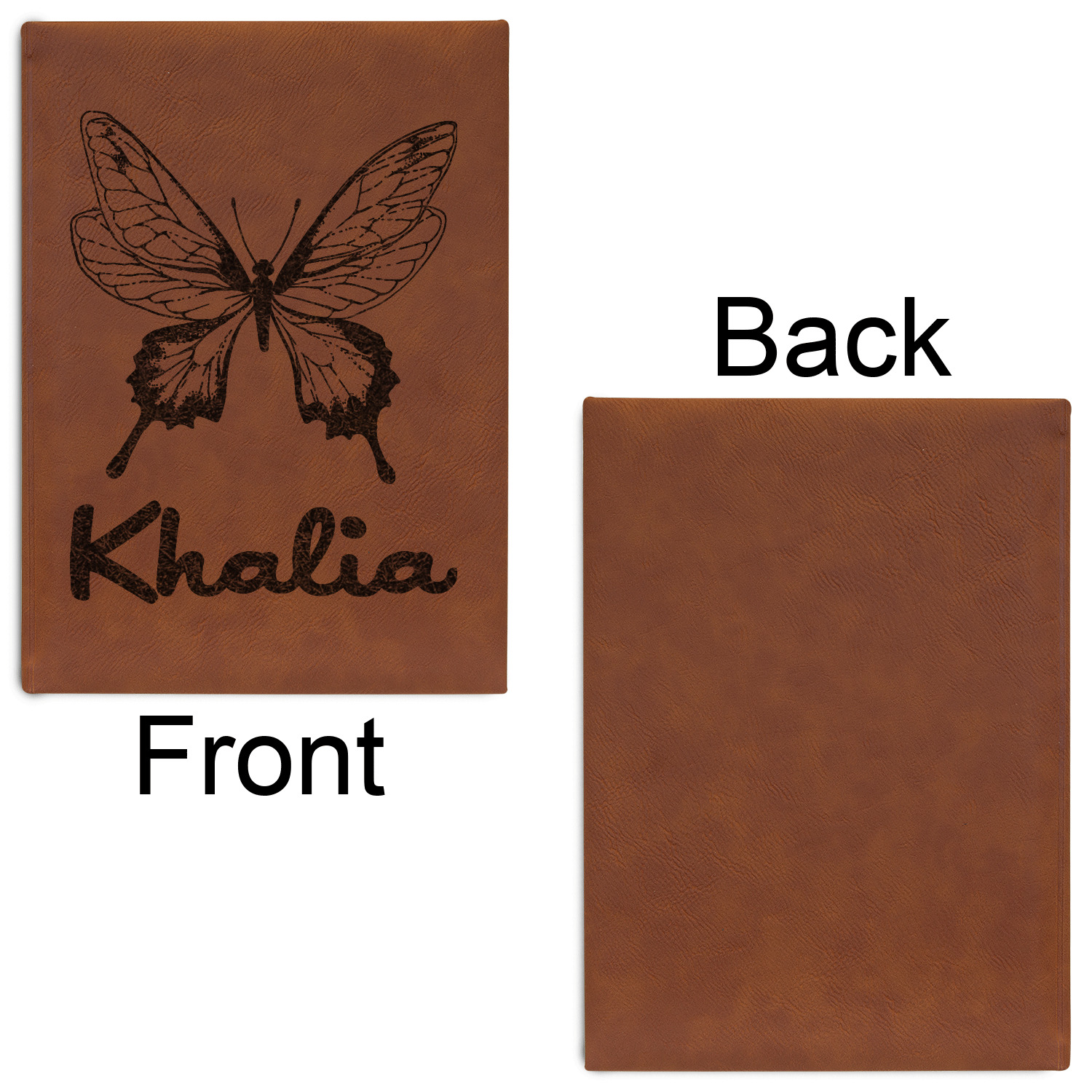 Available in two sizes - small at 8.25" x 5.25" and large at 9.75" x 7", these journal are the ideal size for purses and backpacks alike. Your personalized design is precisely laser engraved onto either the front, or the front and back of your new custom journal.