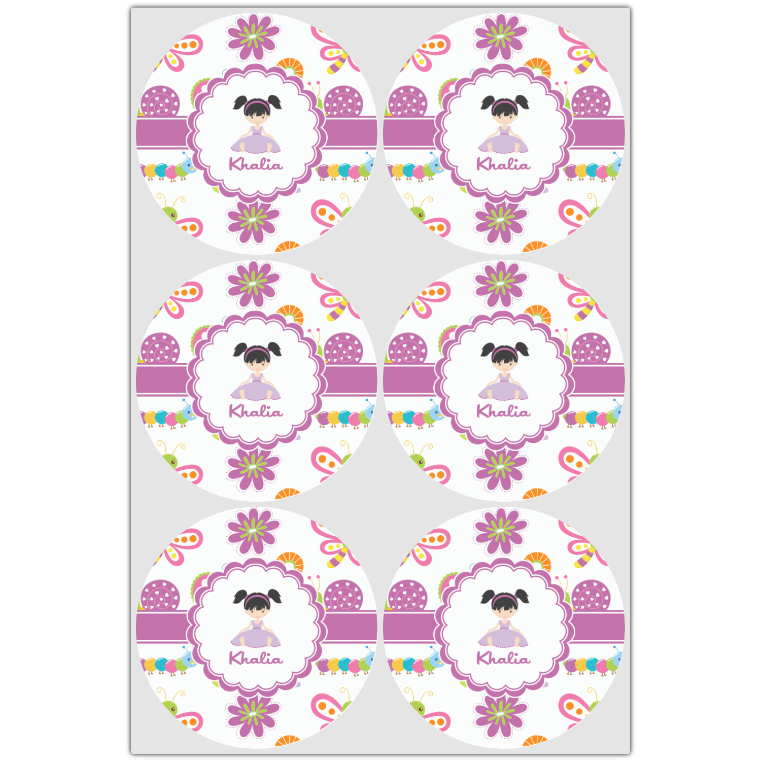 A wide band of purple with an inset of white pull the pattern together. A sweet little girl sits in the center of a purple trimmed scalloped white circle. Add personalization for that custom touch.