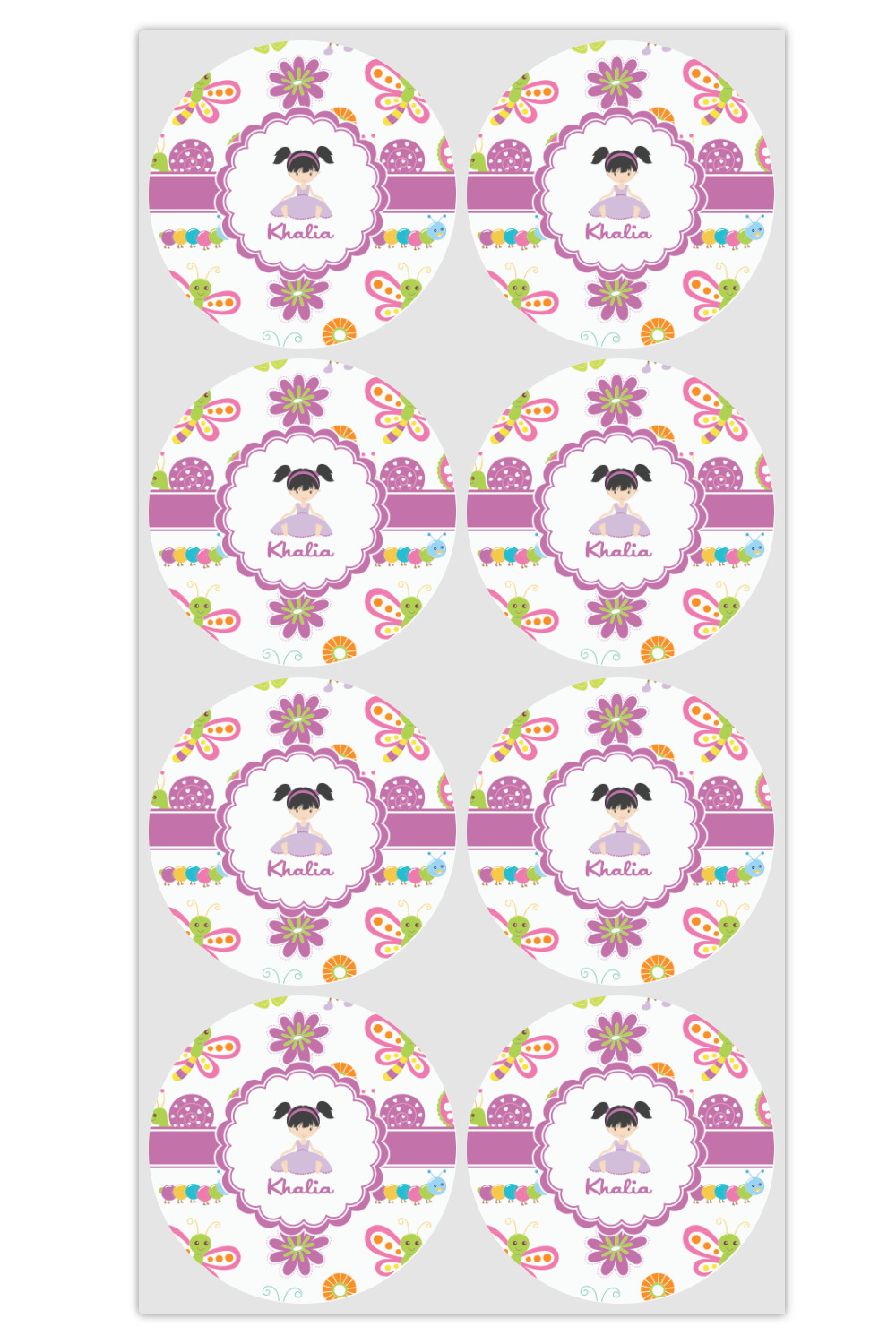 A wide band of purple with an inset of white pull the pattern together. A sweet little girl sits in the center of a purple trimmed scalloped white circle. Add personalization for that custom touch.
