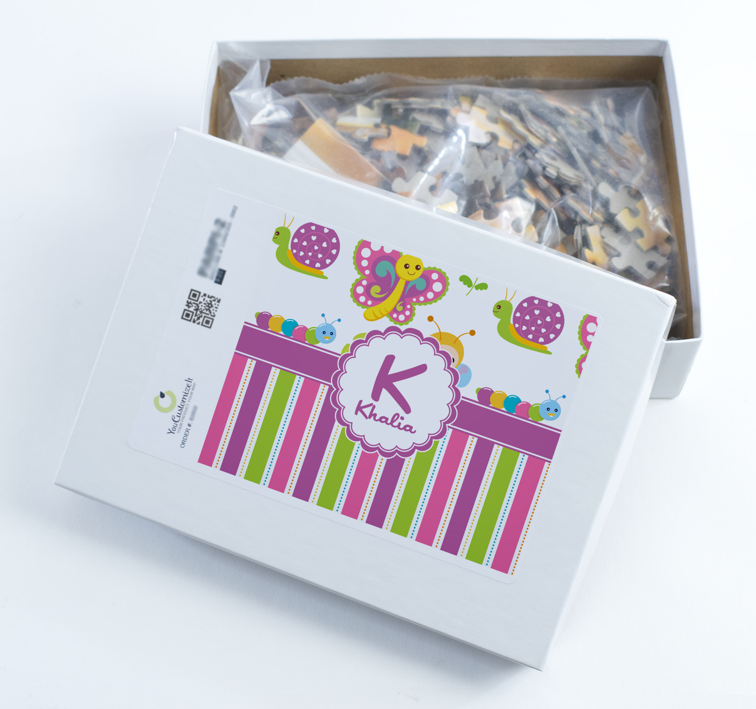 You can also upload your logo or art that you or your kids drew. To create more challenging jigsaw puzzles, you can create a pattern from with your logo or artwork. You can also add other elements such as text or personalization.