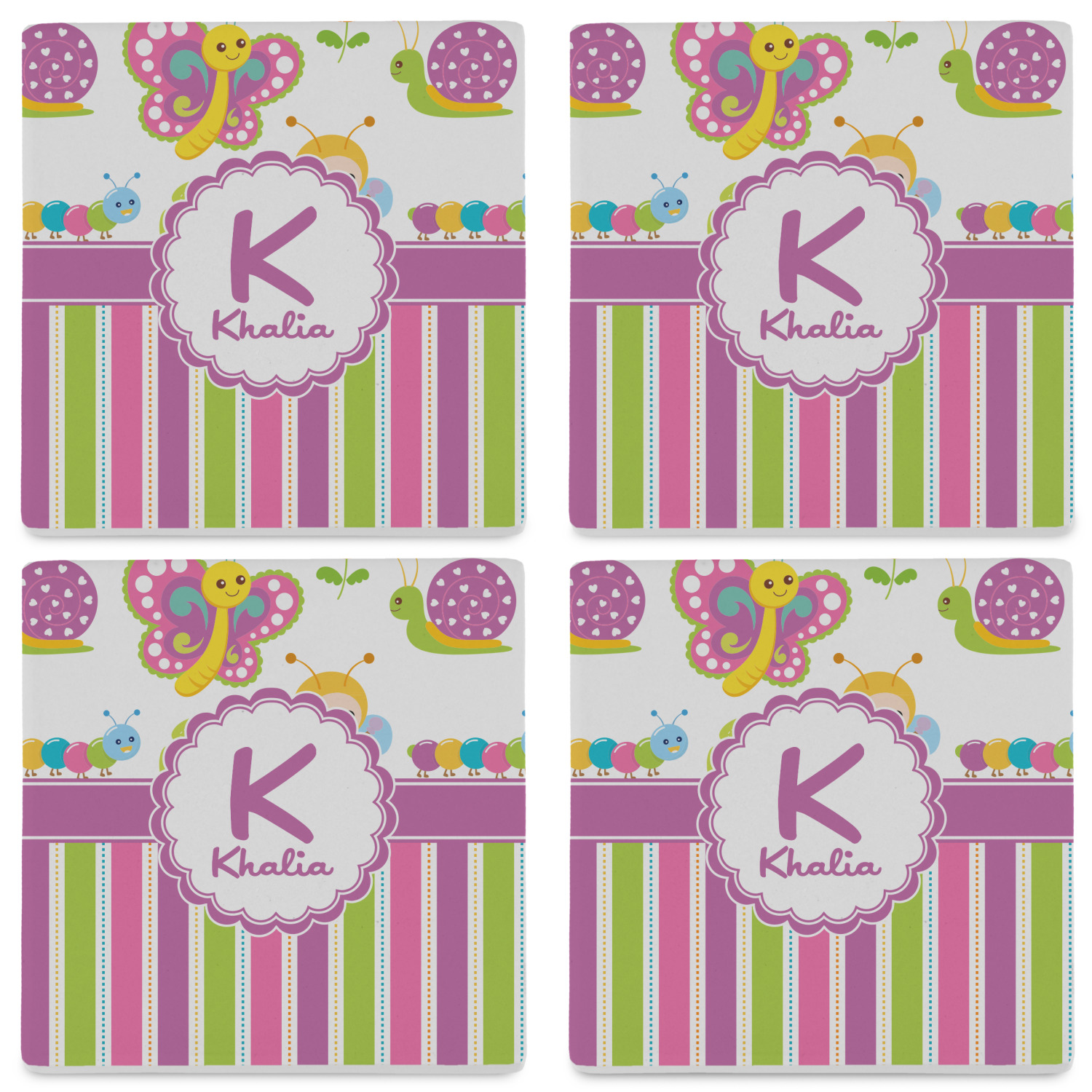 By default, the 4 coasters all have the same design on them, however, you can change that and have a different design on each one of the 4 coasters. The choice is yours.