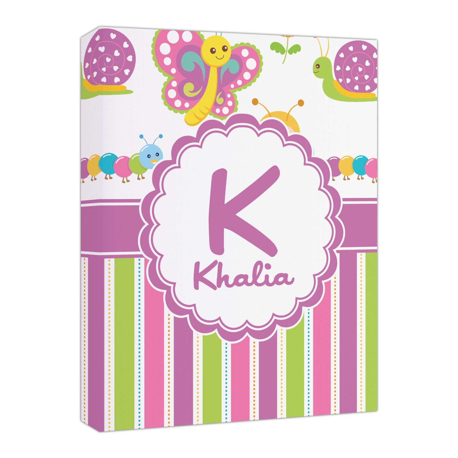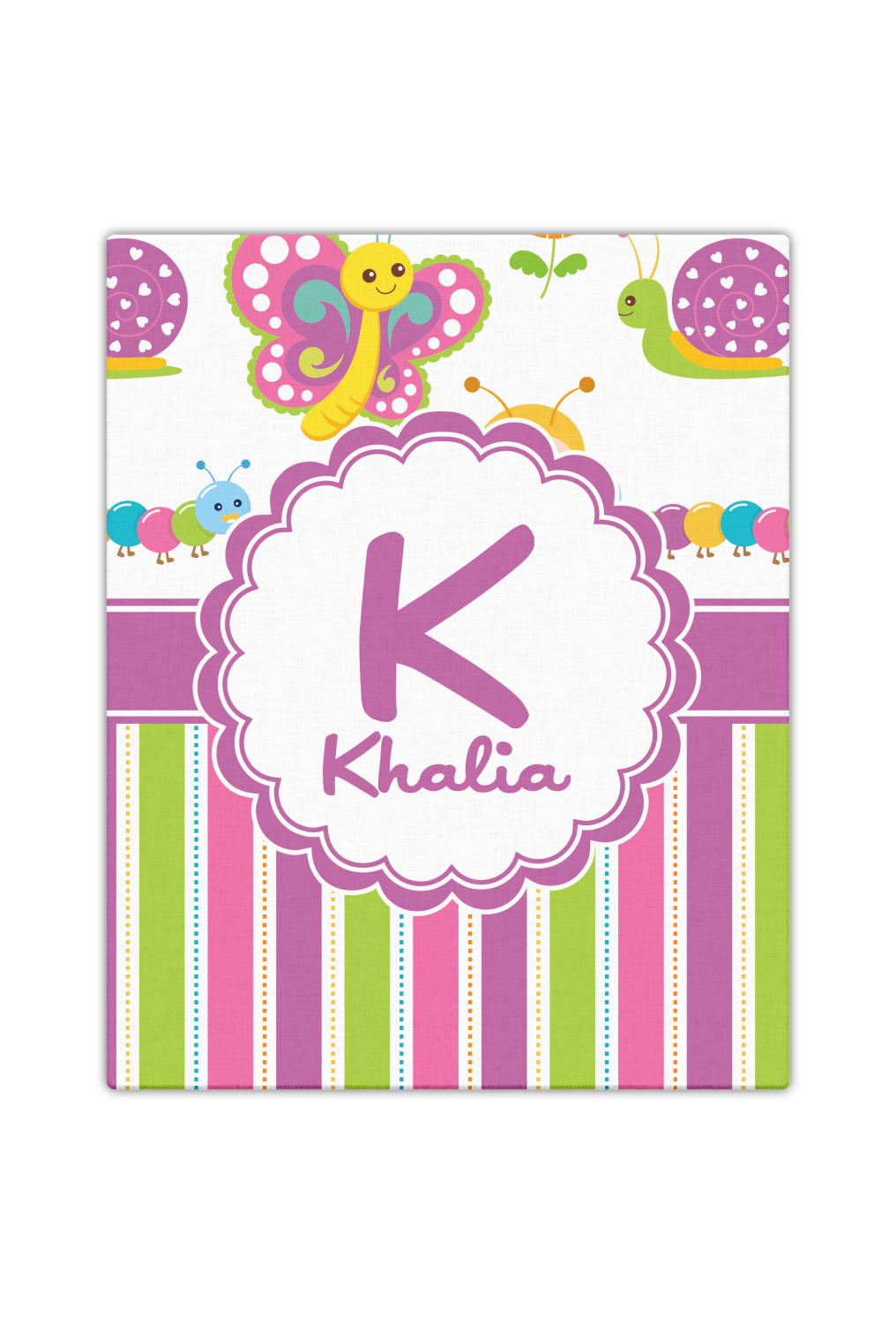 Your little girl can have her own spring garden all to herself. Butterflies, bees, snails, and flowers fill the top part of this design that will surely invoke fantasy and delight for your little one. Pink, purple, blue, green, orange and yellow stripes on the bottom of the design offer a very versatile pallet for easy decorating coordination.