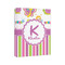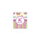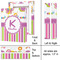 A wide band of purple with an inset of white pull the pattern together. A purple trimmed scalloped white circle allows ample room for custom personalization.