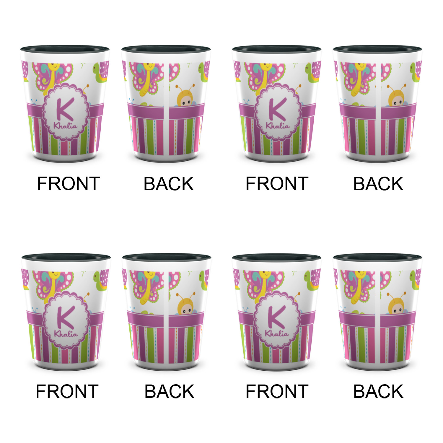 Made from ceramic these shot glasses are printed in full color with the design of your choice. These are a standard 1.5oz size and stand 2.25" tall. Available in a full white ceramic or a two-tone with a black color inside the shot glass. Buy a single or a set of 4, all of which can be designed separately to get you just what you want and need.