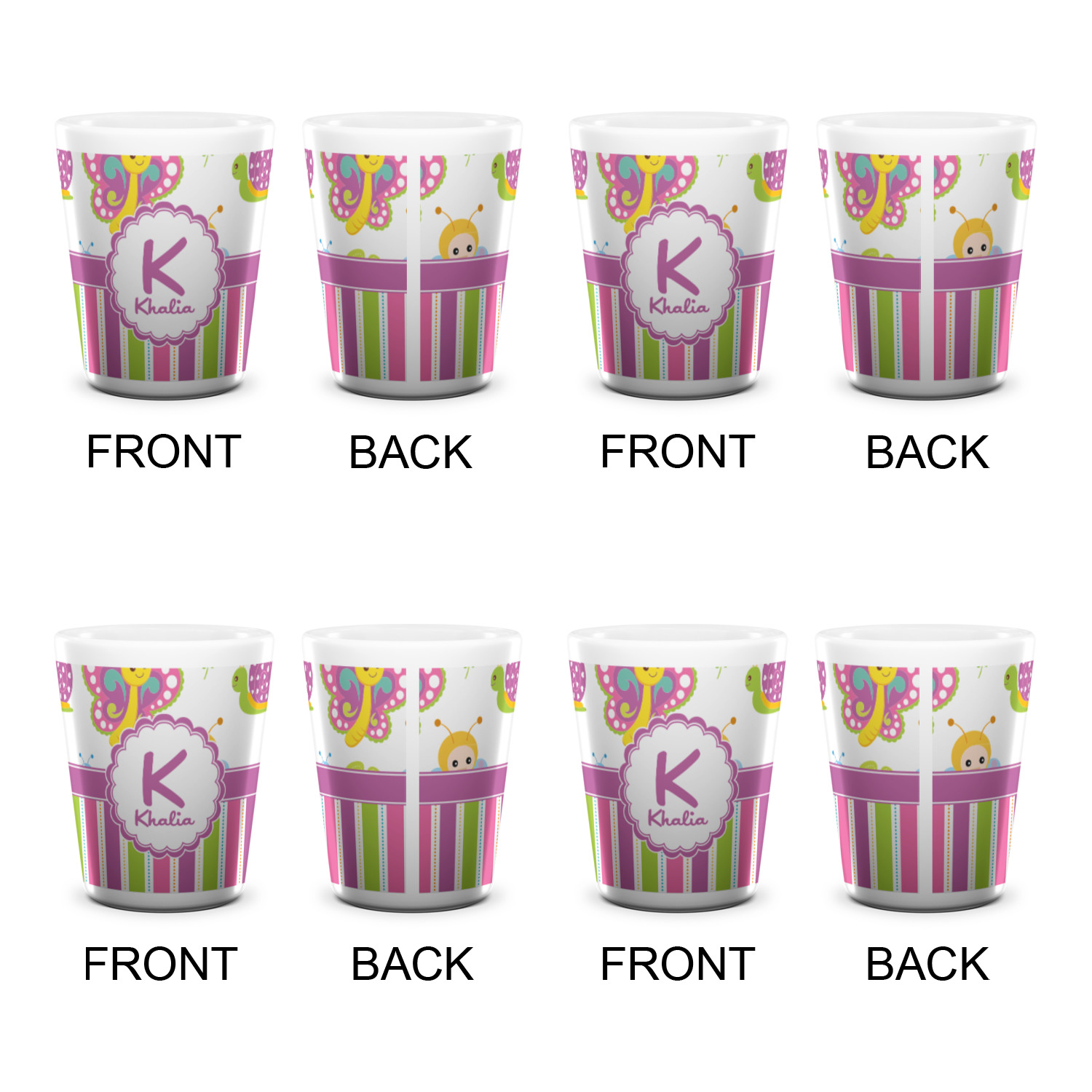 Made from ceramic these shot glasses are printed in full color with the design of your choice. These are a standard 1.5oz size and stand 2.25" tall. Available in a full white ceramic or a two-tone with a black color inside the shot glass. Buy a single or a set of 4, all of which can be designed separately to get you just what you want and need.