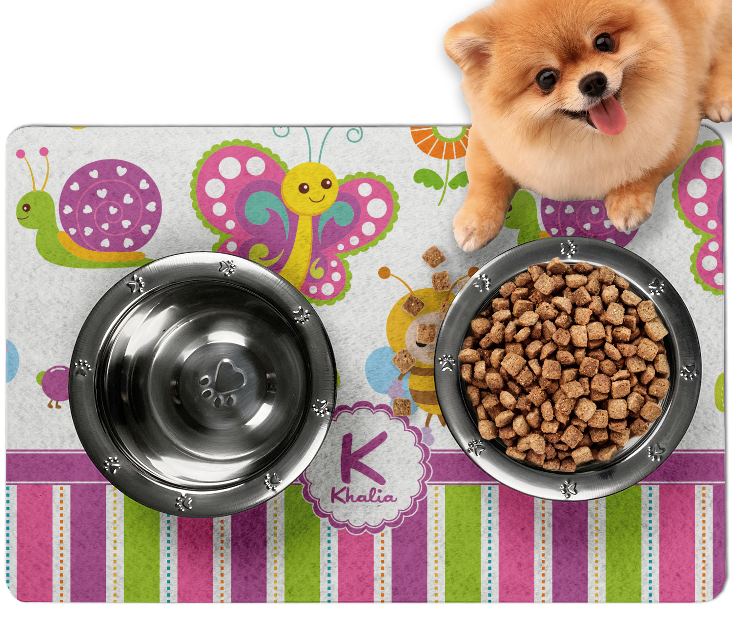 This dog bowl mat, fabricated from polyester, proudly displays your customized design on its top, while its bottom includes a non-slip rubber. This feature allows it to remain firmly in place, even when your dog spills his/her water. With 3 sizes available (18" x 12", 24" x 18", 30" x 24"), the pet food mat has ample space for both a food and water bowl for any sized dogs. Though specified for dogs' use, these mats are also a splendid option for cats.