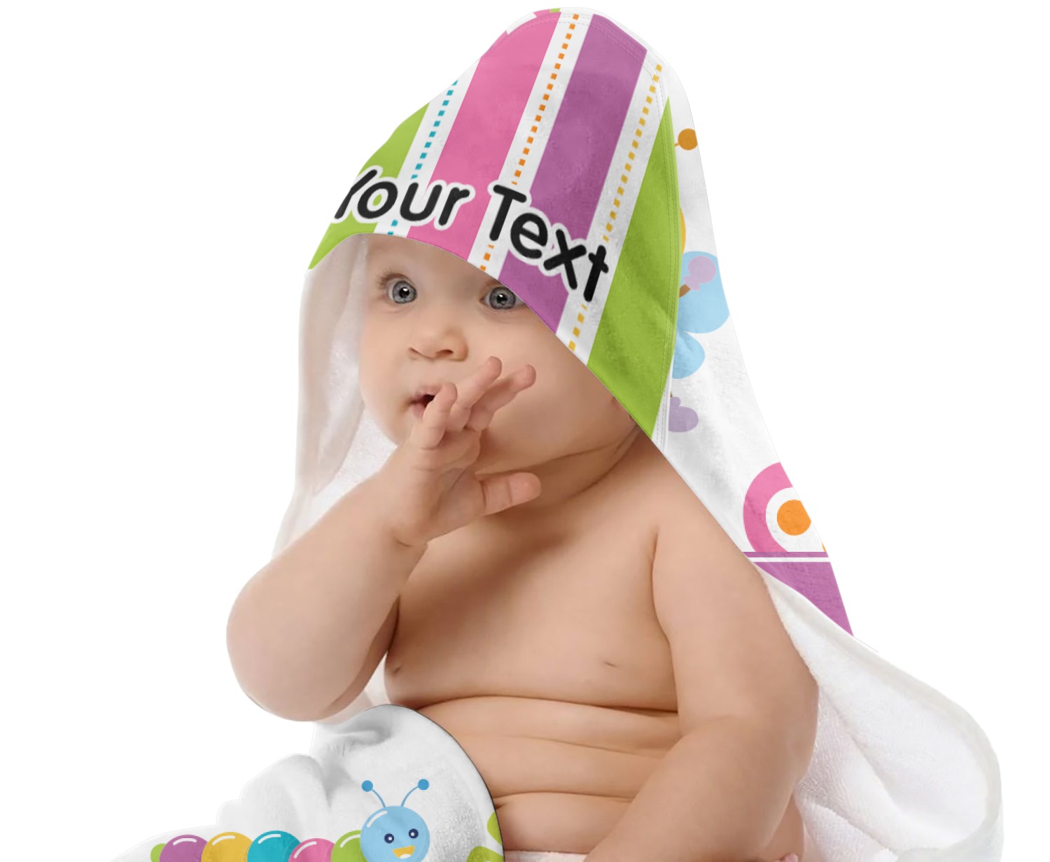 This baby towel is made with a plush microfiber velour and cotton terry. and thus will be soft and gentle against your newborn's skin, but also, very absorbent. Your customization is printed across the front & the hood, while the inside is a classy white.