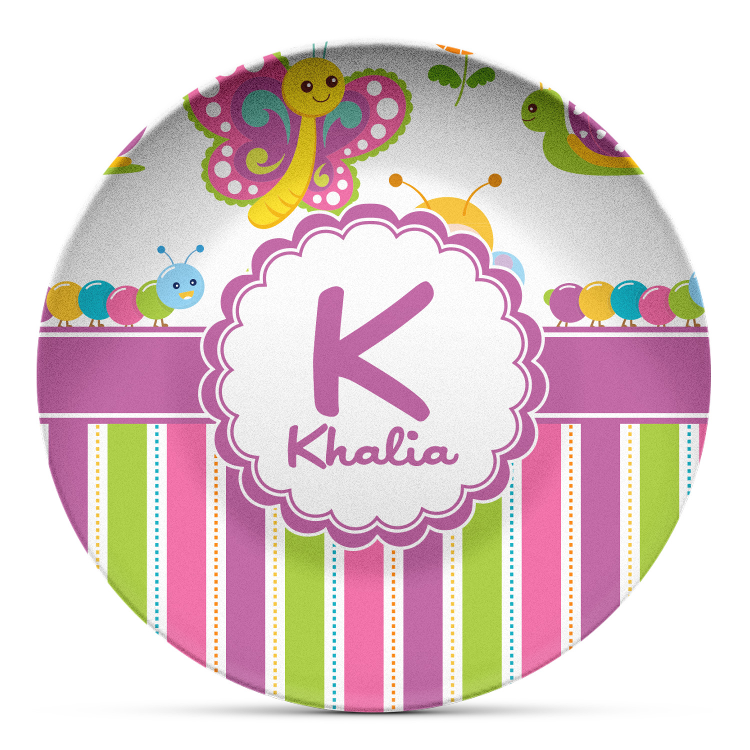 These plastic plates have the versatility, durability, and weight of melamine plates but are instead are made from a melamine-free composite, thermo-set, polymer plastic. These plates are made right here, in the USA, without the use of harmful chemicals, such as BPAs, formaldehyde, or DEHPs. Our elegant plastic plates can even withstand temperatures of up to 250 degrees Fahrenheit, for up to 60 minutes. The entire face of the plate exhibits your personalization in bright, vibrant color, and the plate's diameter measures at 10" long.