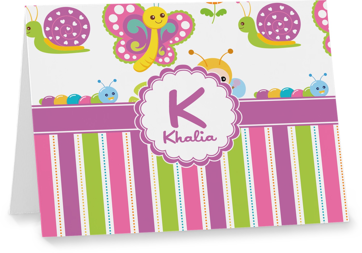 Our custom folded note cards are printed on premium 100lb. card stock and comes with white envelopes. The note card measure 5.5 by 4.25 inches and are blank on the inside for your handwritten message.