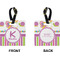 These personalized bag tags are sold in a variety of shapes, so that you may find the product that meets your vision exactly. We sell a round luggage tag, which measures at approximately 4" x 4". Our square luggage tag is about 3.5" x 3.5", while our rectangular version is 2.75" x 4 ".